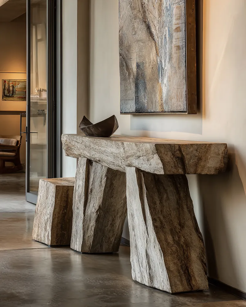 Your entryway sets the tone! For a home centered on form and volume, let's design an entryway that makes a statement from the moment you step inside. 🗿 Instead of clutter, focus on a single, commanding piece – perhaps a substantial console table with striking legs or an oversized sculptural floor lamp. Play with negative space; let the volume of the piece breathe. Materials like honed marble, solid wood, or brushed metal can add significant visual weight and artistry. Think grand, not cramped. How do you make your entrance memorable? ✨ Save for dramatic entry inspiration!