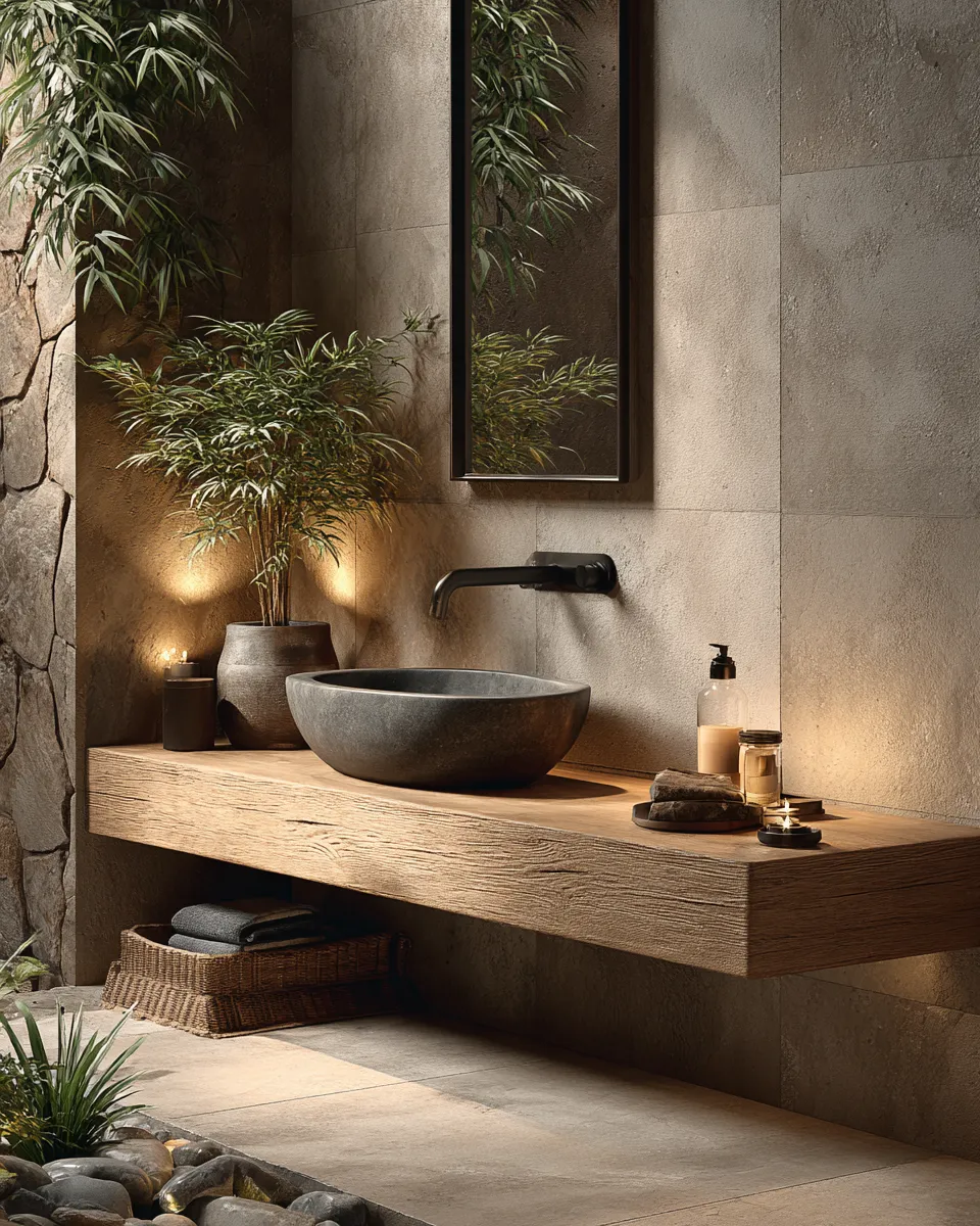 Transform your bathroom into a tranquil Japandi spa retreat! The key is natural materials and minimalist design. Think matte black or wood accents, natural stone tiles, and uncluttered surfaces. ๐ฟ Incorporate elements like bamboo accessories and soft, diffused lighting to enhance the serene atmosphere. ๐ชด This approach creates a sense of calm and mindfulness, making your daily routines feel like a ritual. Save this for your ultimate relaxation bathroom! โจ #bathroomideas#japandiideas#spalikebathroomideas#interiordesignideas#decorideas#japandi#bathroomdesign#minimalistbathroom#homedecor#sanctuary