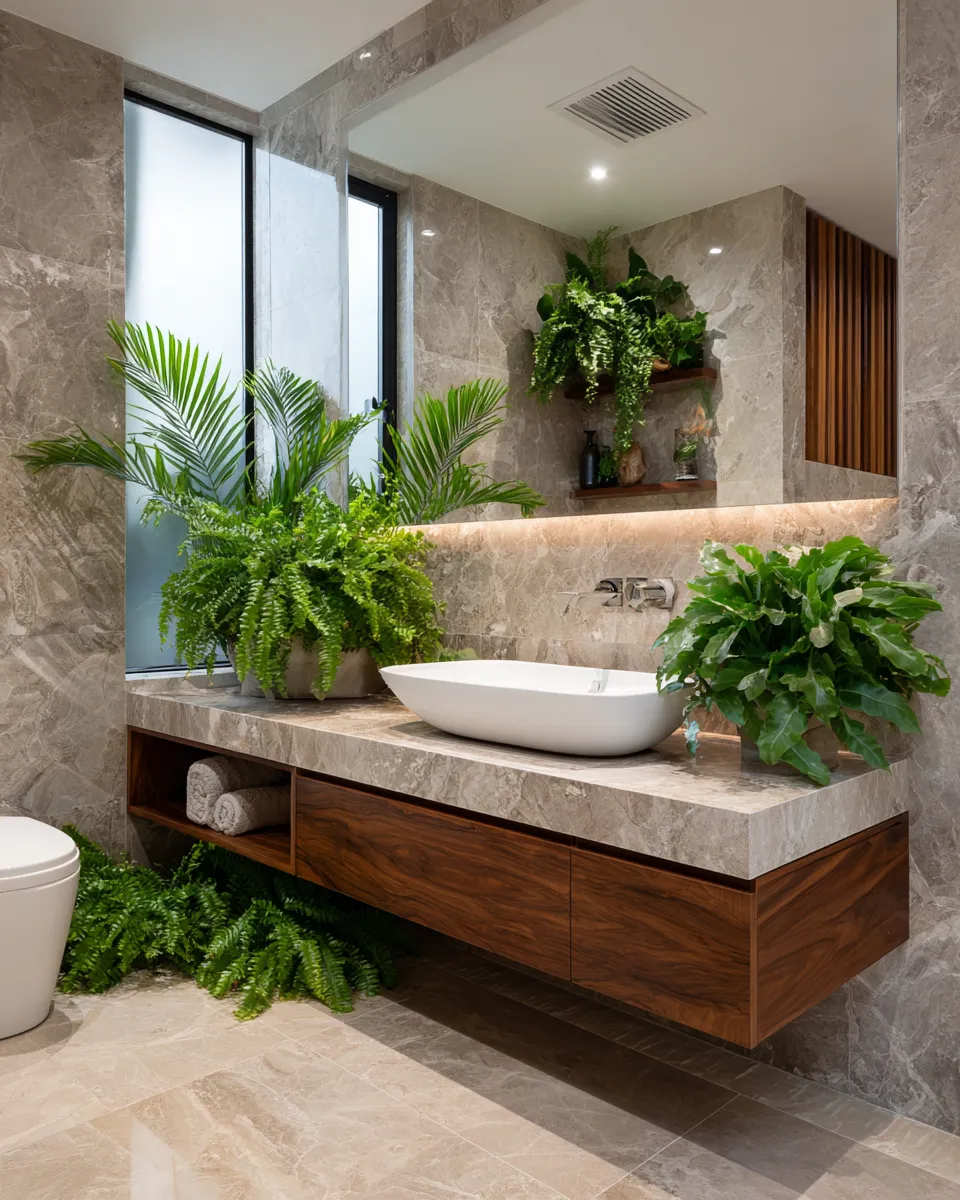 Save this for your bathroom refresh! 🪴 #biophilicdesign#bathroomideas#interiordesign#homedecor#plantlover#naturalmaterials#decorideas#spaathome#renovation#homeimprovement