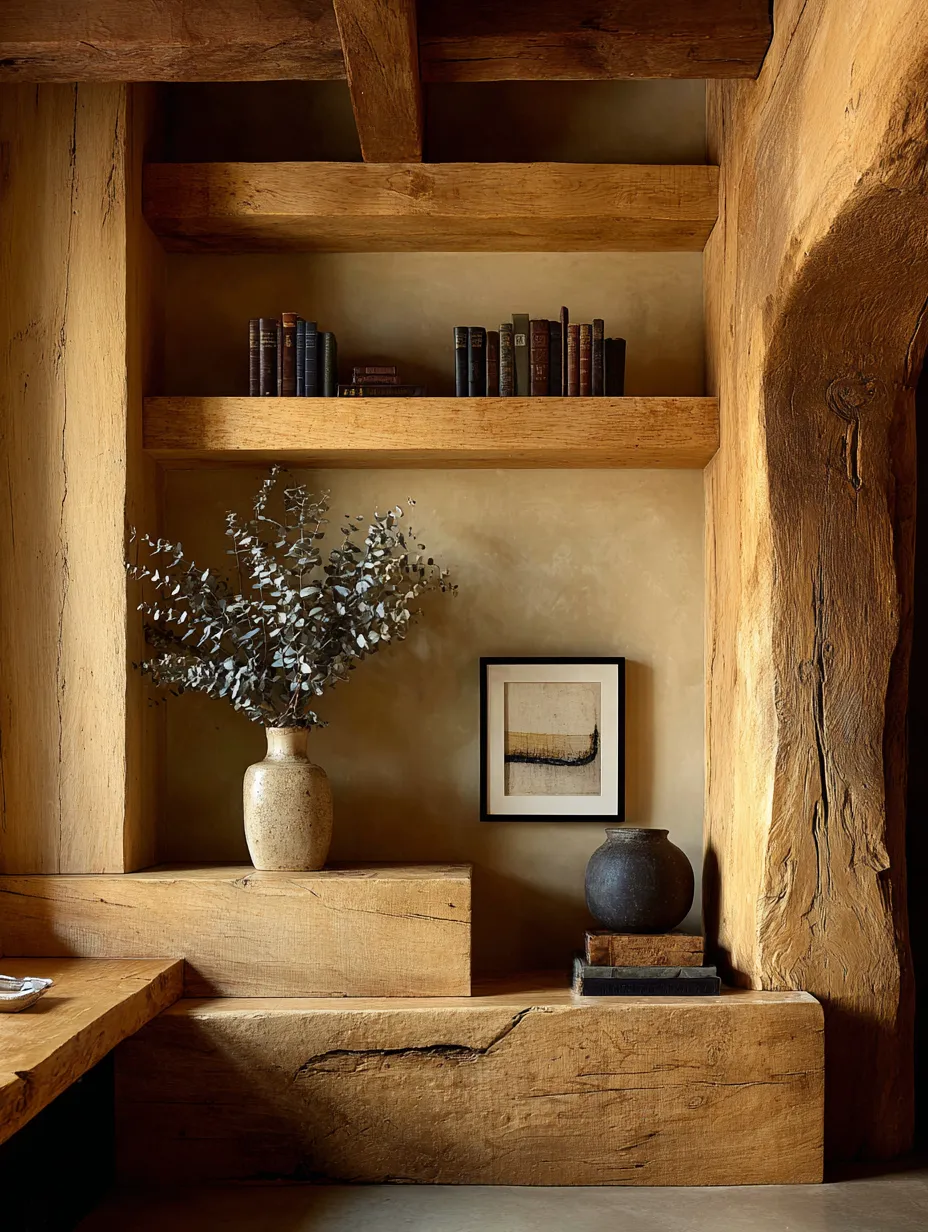 Turn your walls into a gallery of your cherished items with artisan wall shelves. ✨ More than just storage, these pieces are handcrafted to showcase your personality and the things you love. Imagine floating shelves made from reclaimed wood, or elegantly carved wooden brackets holding your favorite books, plants, or art. 🪵 They add texture, warmth, and a touch of sophistication to any room, from the living room to the entryway. Let your walls tell a story of curated beauty. 🪴
