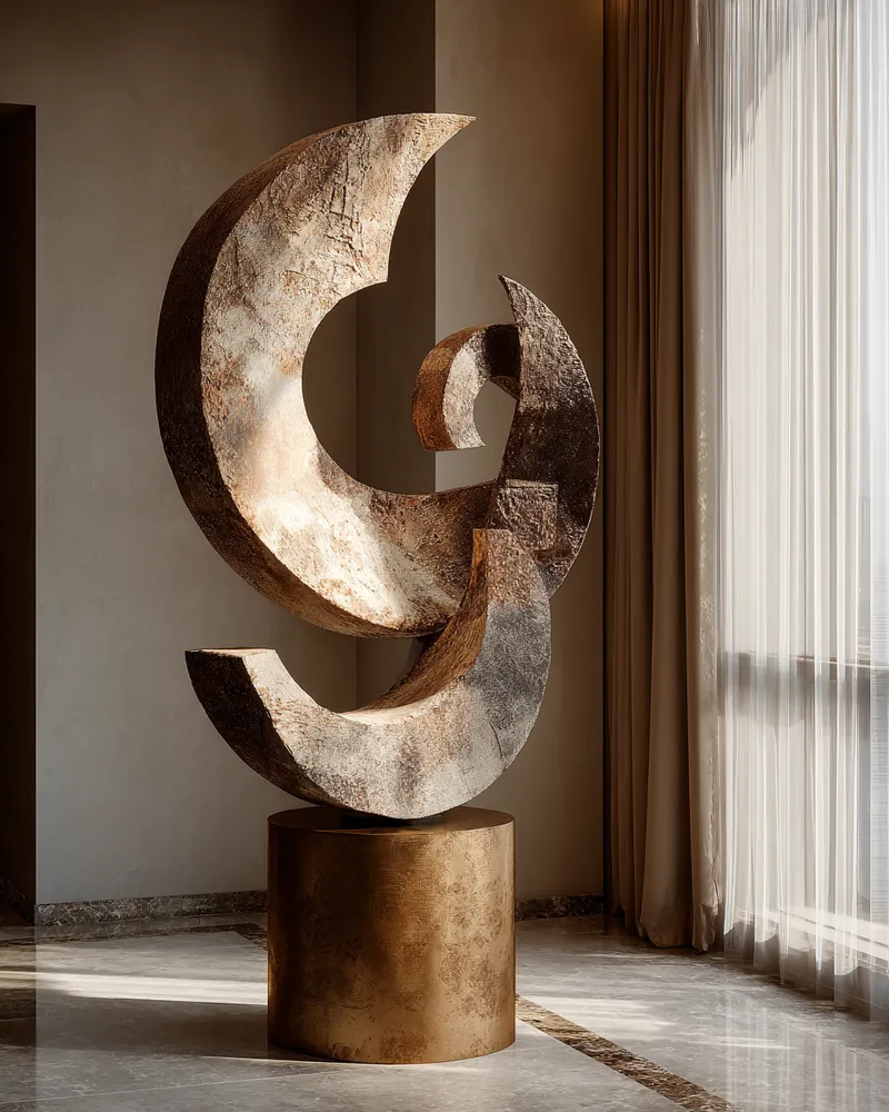 Curate your pieces intentionally, considering their placement and relationship to the architecture around them. Oversized sculptures, pieces with strong texture, or even a thoughtful arrangement of smaller objects can create dynamic visual interest. It's about showcasing art not just for its subject matter, but for its physical presence. 🎨