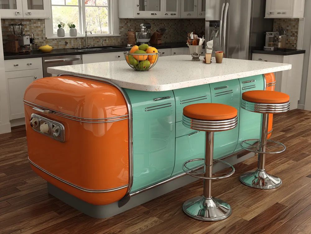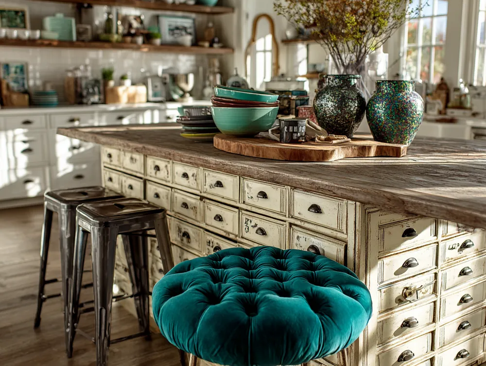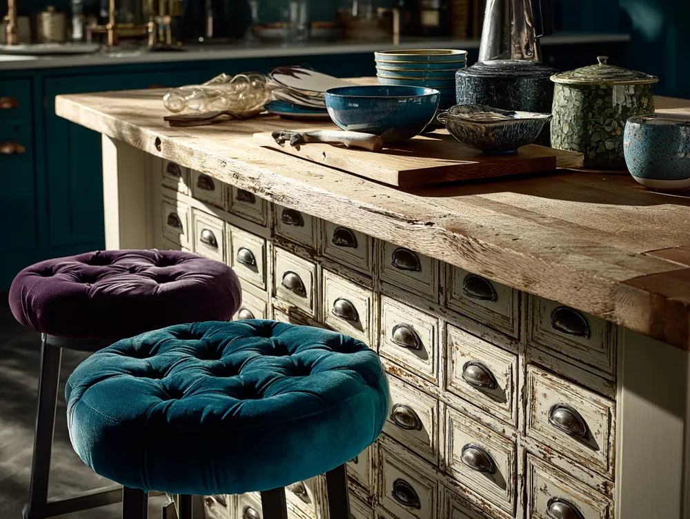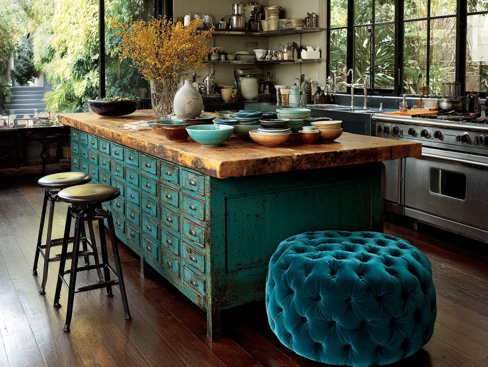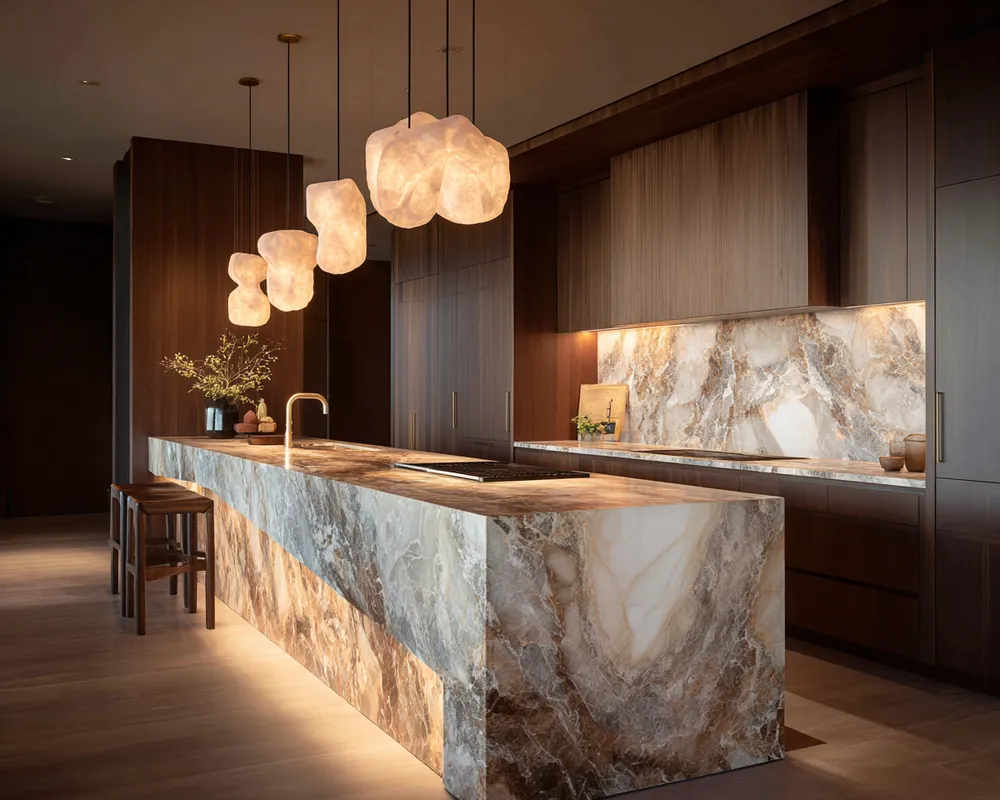 Your kitchen island is often the heart of the home, so let's make it a visually arresting centerpiece! Think sculptural forms and bold design choices. 🗿