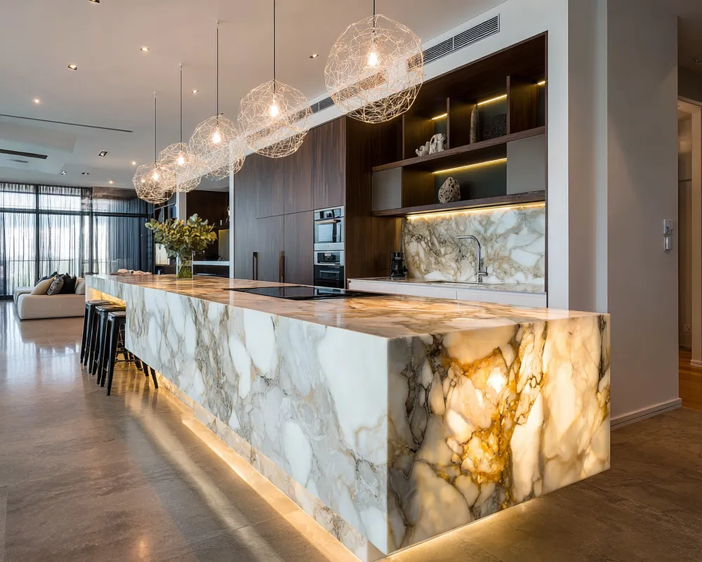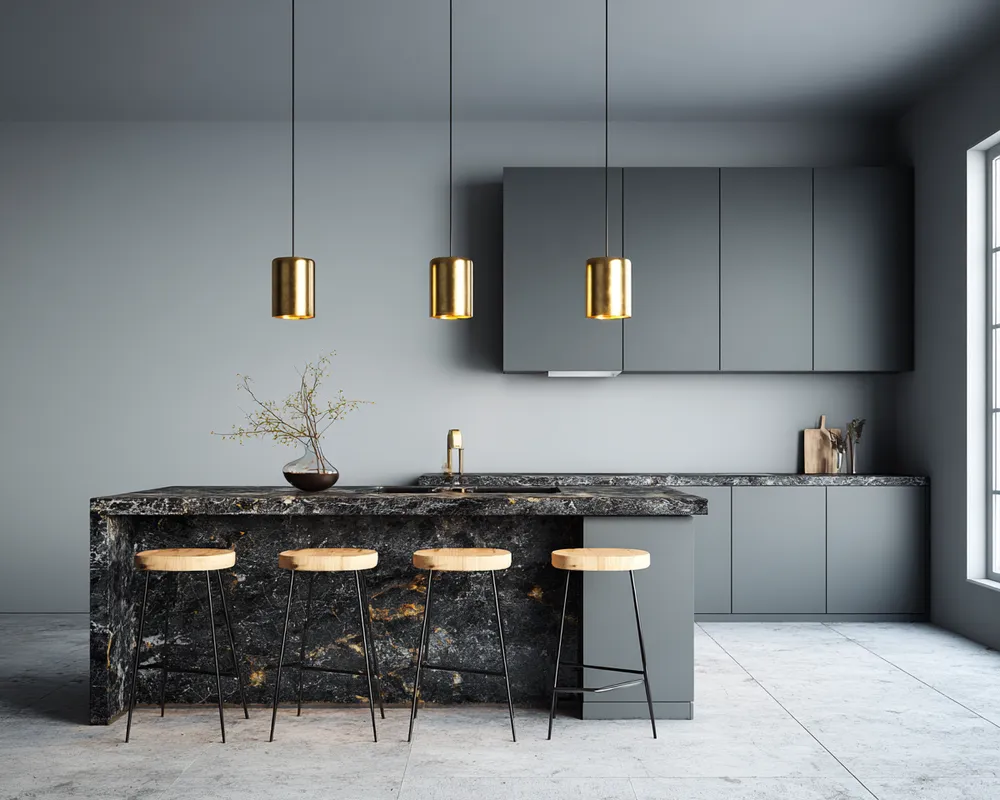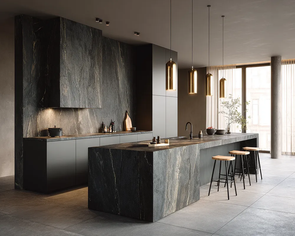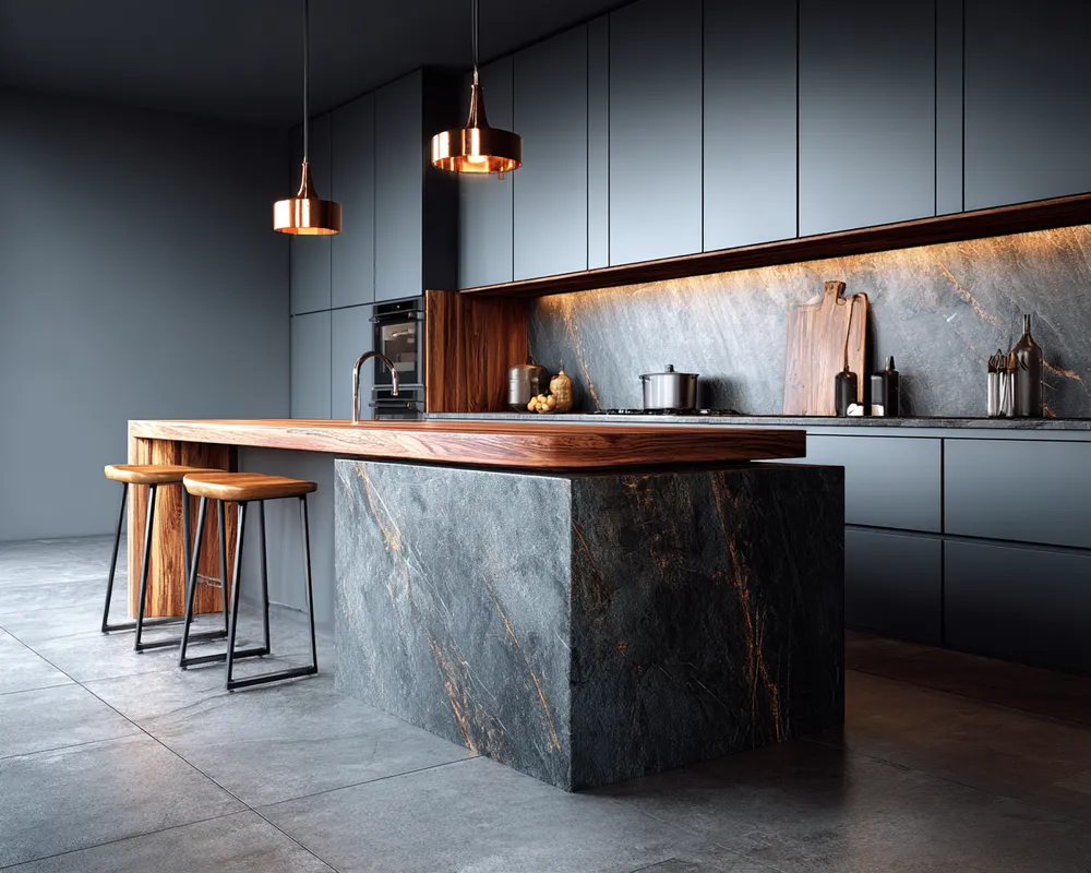 Your kitchen island is often the heart of the home, so let's make it a visually arresting centerpiece! Think sculptural forms and bold design choices. 🗿