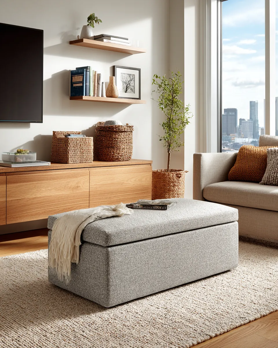 * **Ottoman with Storage:** Doubles as a footrest, coffee table, and secret storage.