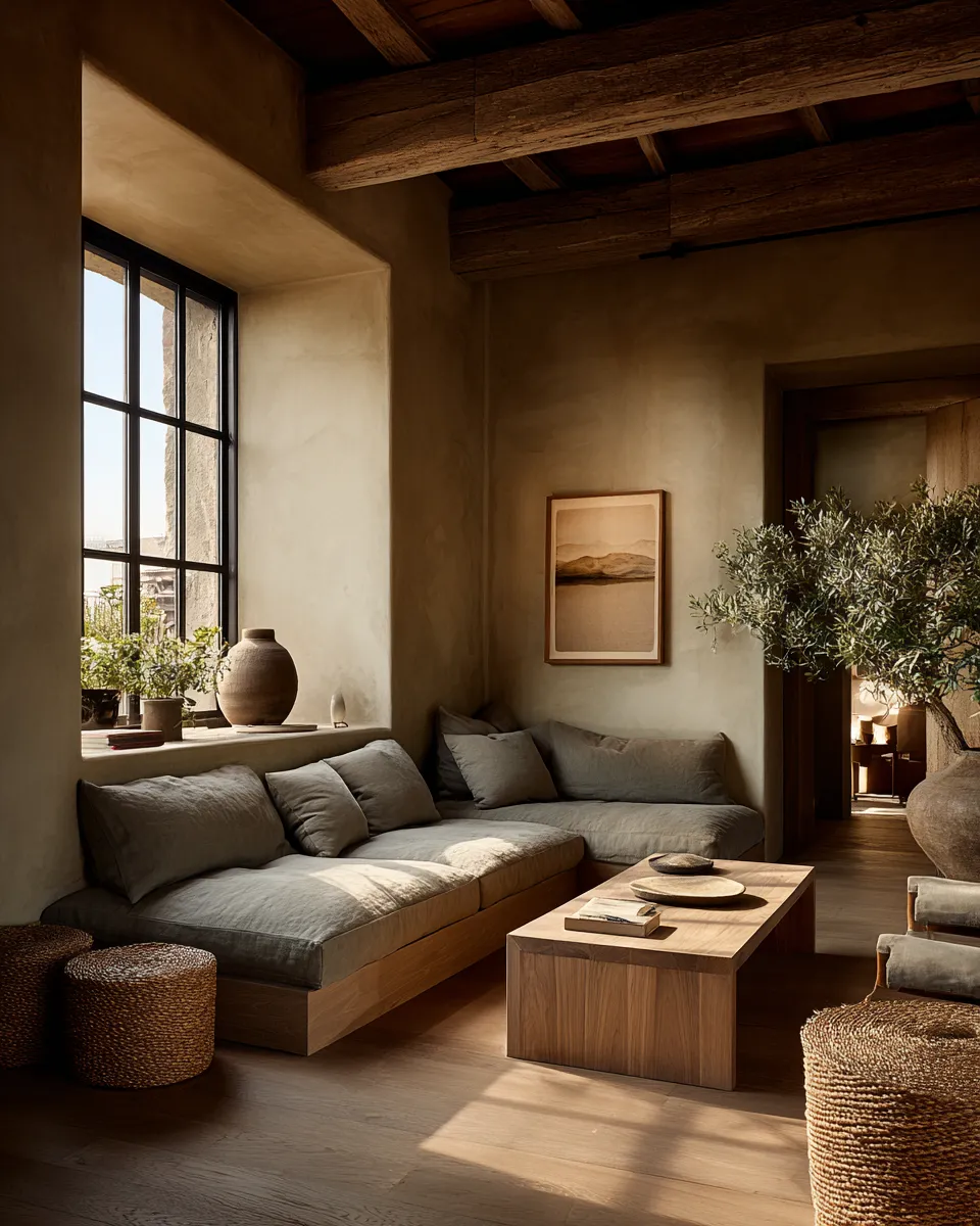 Create a space that feels grounded and serene. Save this for your next design project! 🌿 #JapandiLivingRoomIdeas#NaturalMaterials#HomeDecorIdeas#JapandiStyle#InteriorDesignTips#OrganicDecor#CalmSpaces#MinimalistLiving#TextureInDesign#EarthyTones
