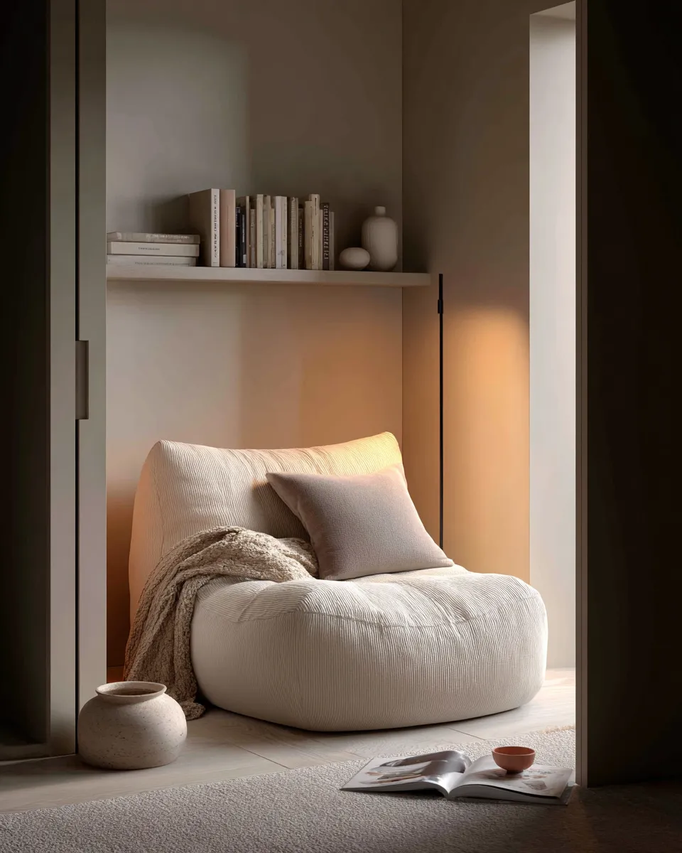 Create your personal sanctuary for quiet moments. A minimalist reading nook is all about comfort, simplicity, and embracing negative space.