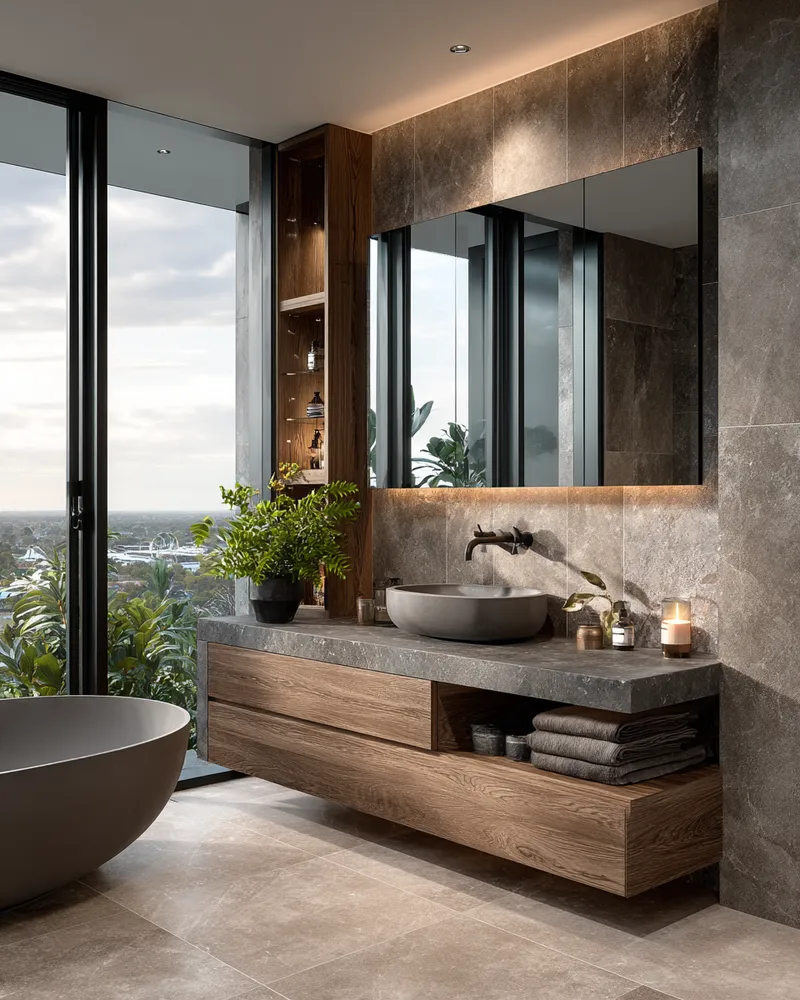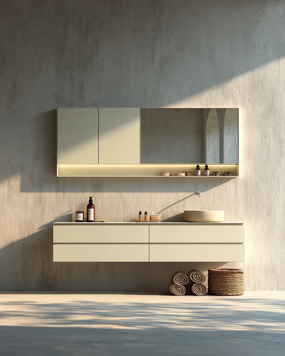 A serene bathroom starts with smart, hidden storage. Embrace minimalism to create a calming, functional space where everything has its place.