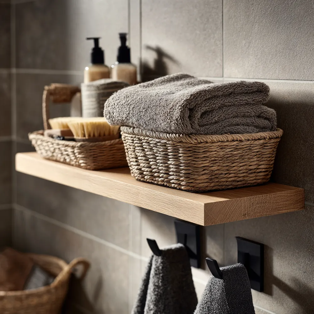 * **Woven Baskets:** For towels, soaps, or beauty products.