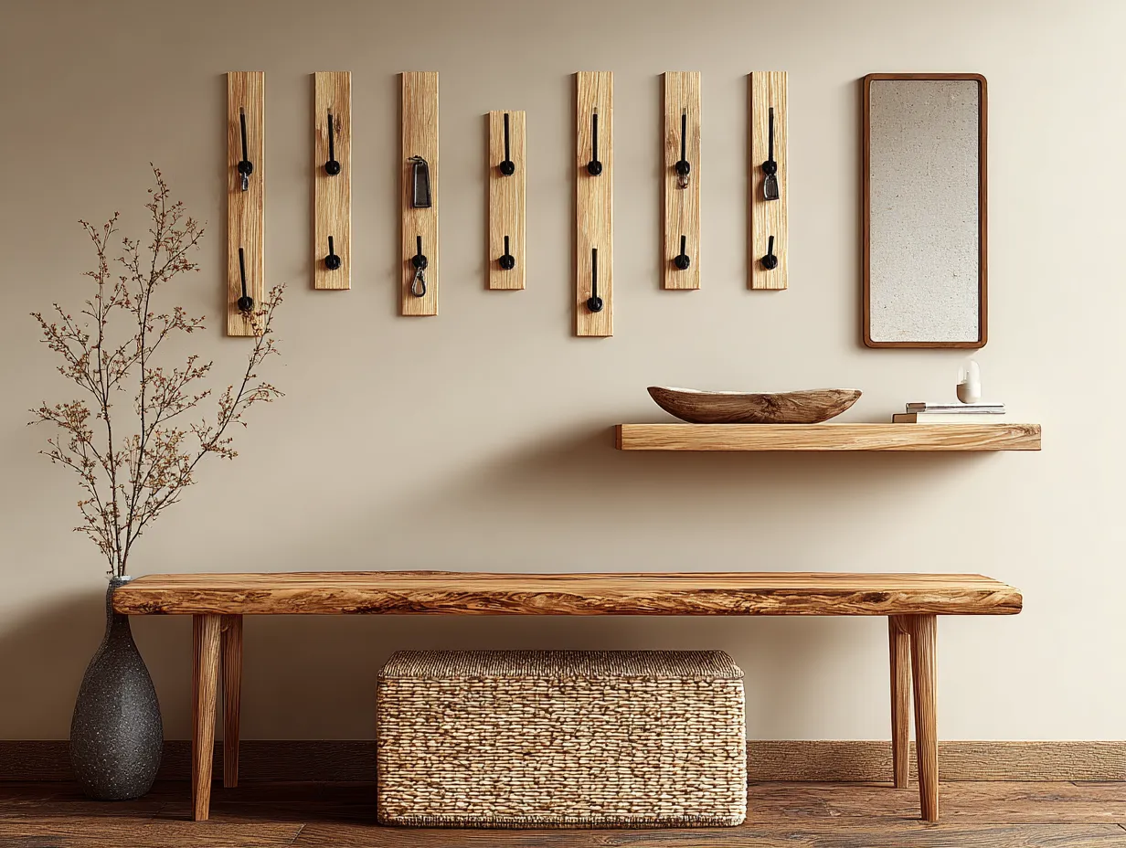 * **Wall Hooks:** Sleek, minimalist wood or matte metal hooks for coats and bags.