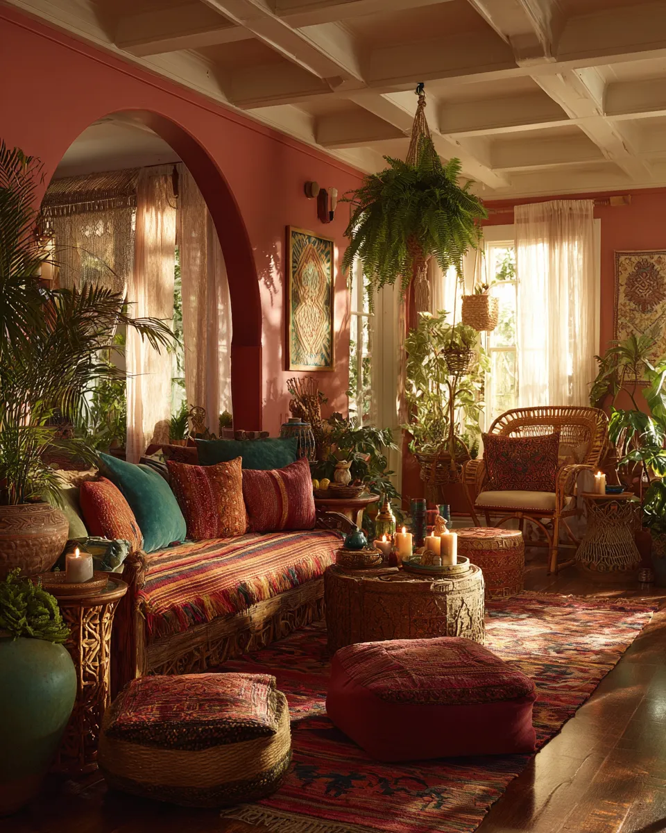 Dive into the vibrant, eclectic world of bohemian decor! Think layered textiles, natural materials, global-inspired patterns, and a sense of relaxed creativity. 🌍