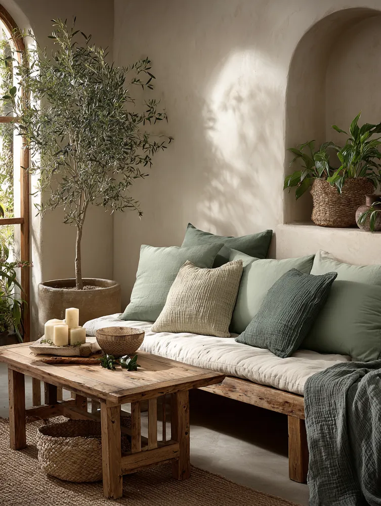 Nature's Palette: Muted Greens & Earthy Browns for Your Living Room 🌿🌸