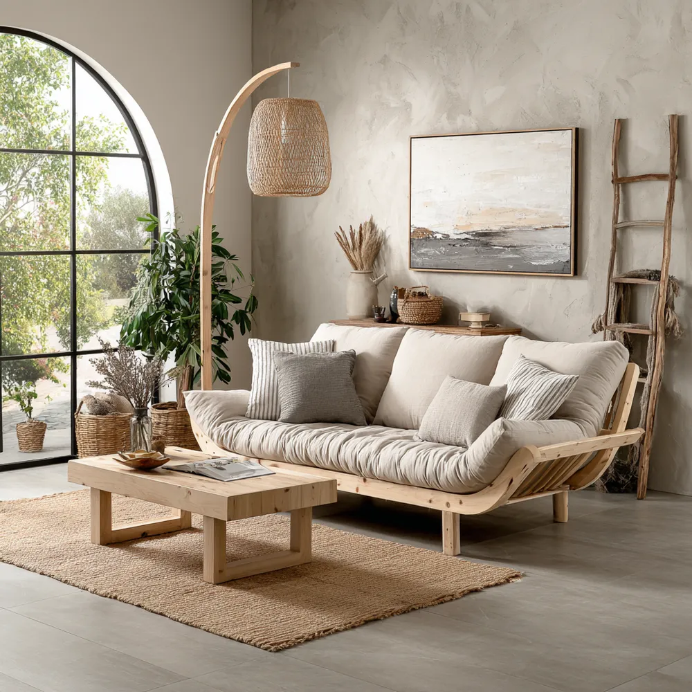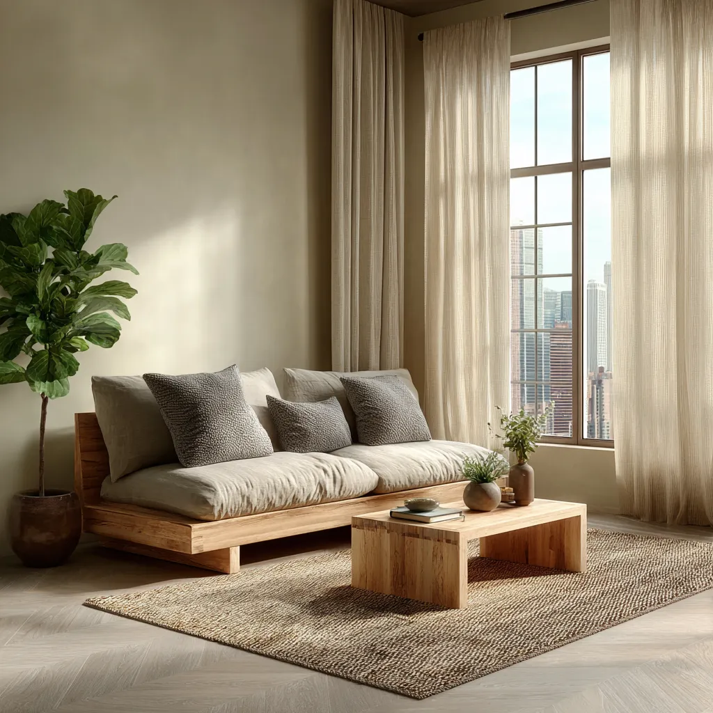 We love using light woods like oak and bamboo, paired with a neutral color palette of soft whites, greys, and earthy tones. Incorporate textured fabrics for warmth and embrace plenty of natural light.