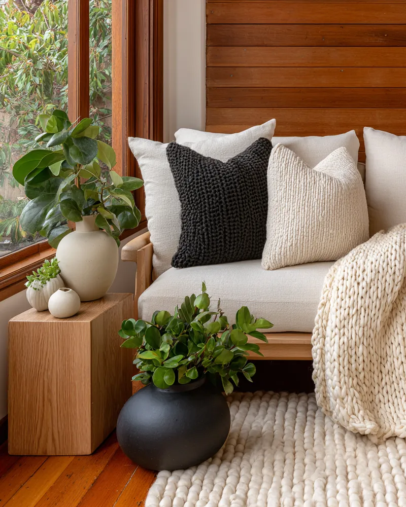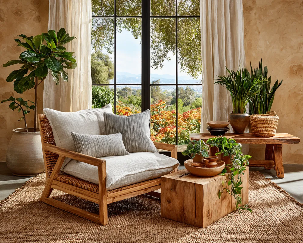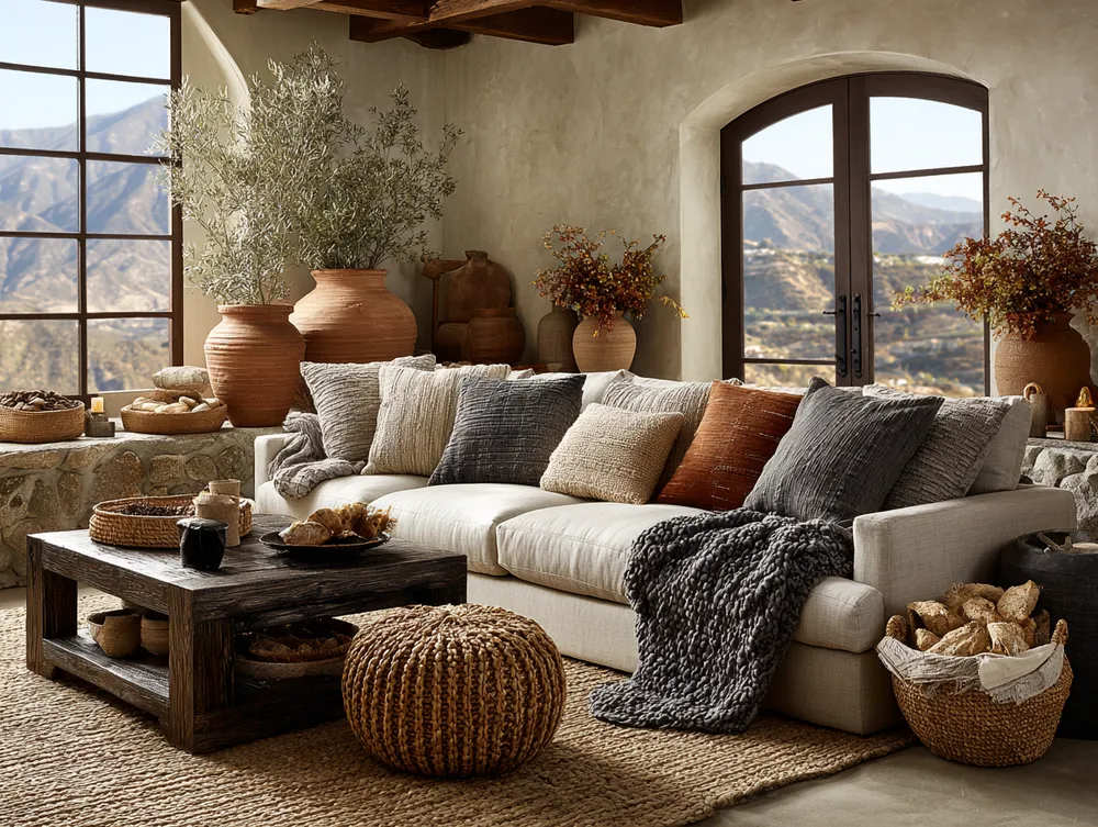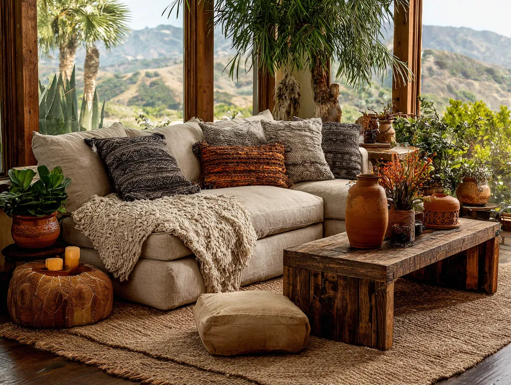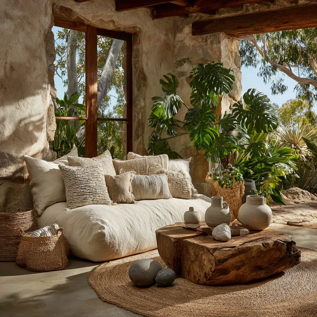 Think beyond smooth surfaces. Layering different textures like woven jute rugs, nubby linen upholstery, reclaimed wood accents, and artisanal ceramics adds depth and warmth.