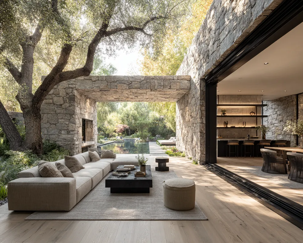 * **Material Continuity:** Carry a dominant material or texture from one room into the next, perhaps through flooring, wall treatment, or a connecting architectural element.