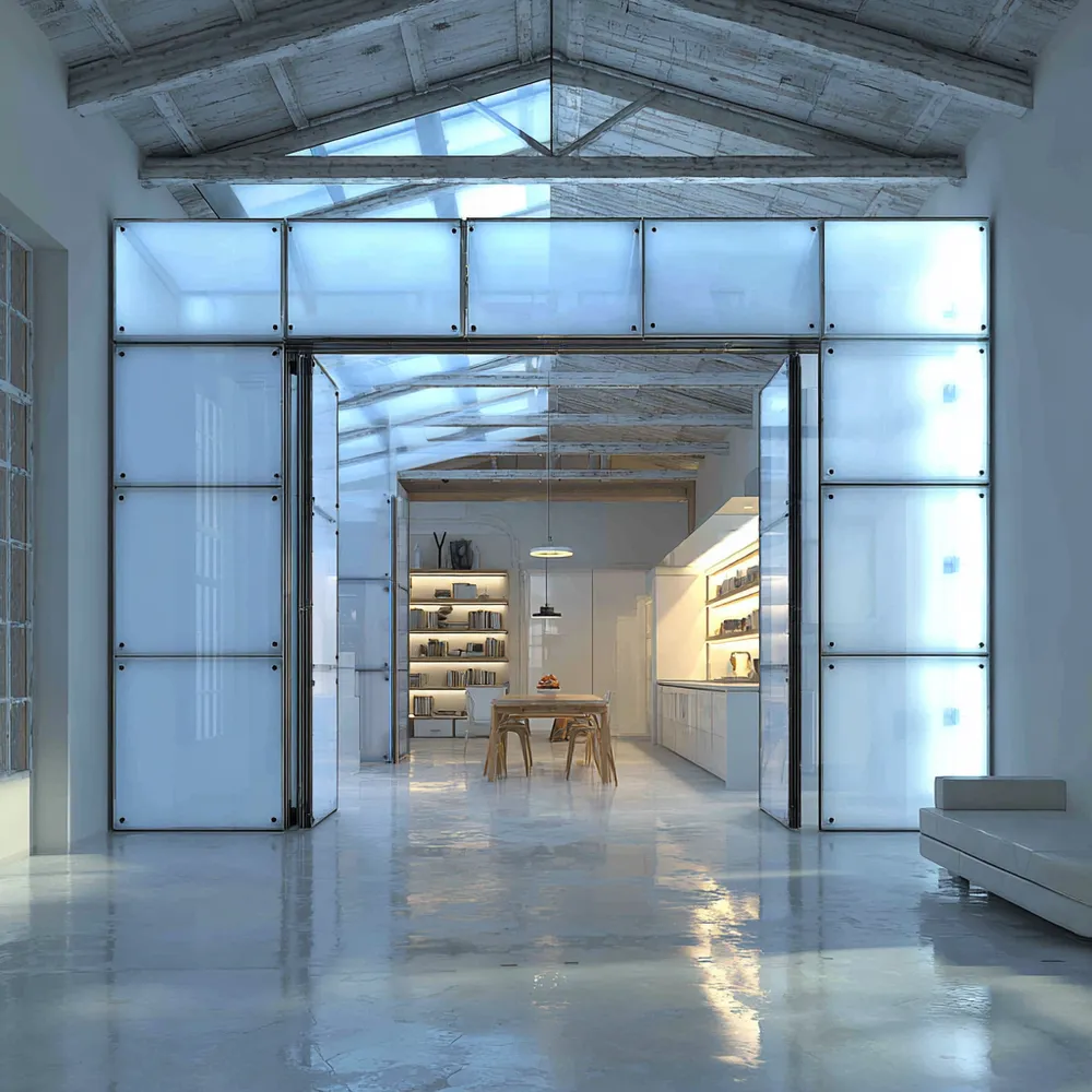 * **Layered Forms:** Overlap or offset panels in a controlled, abstract manner to create visual complexity and a sense of three-dimensionality.
