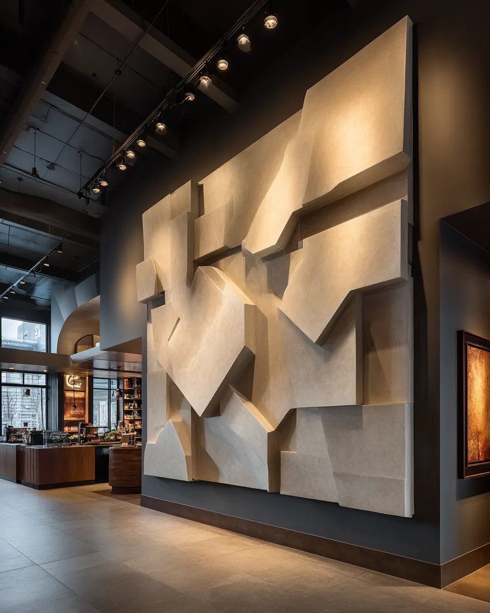 * **Geometric Facets:** Create panels with angled edges and varied depths that catch light and cast dynamic shadows, turning a flat wall into a sculptural element.