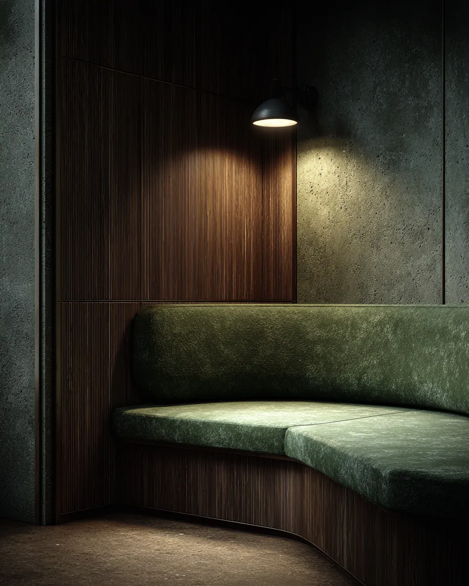 * **Textural Accents:** Apply a dramatically different texture—like rough concrete or polished metal panels—to the walls of a corner or recess, making it a distinct architectural element.