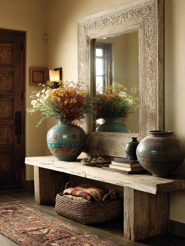 Who says kitchens have to be sterile? Infuse yours with global craftsmanship! 📣 My kitchen features hand-carved wooden utensils from Bali, vibrant woven placemats from South America, and rustic ceramic bowls. These artisanal pieces add warmth, texture, and personality that standard items lack. Even small additions, like a unique serving platter or a set of handcrafted mugs, can make a big difference. It's about celebrating the beauty of handmade and bringing a touch of the world into your daily rituals. Save for your artisanal kitchen dreams! ✨ #GlobalNomadDecor#KitchenDecor#ArtisanalKitchen#HandmadeHome#DecorInspo#GlobalStyle#HomeStyling#KitchenInspiration#BohoKitchen#UniqueHome