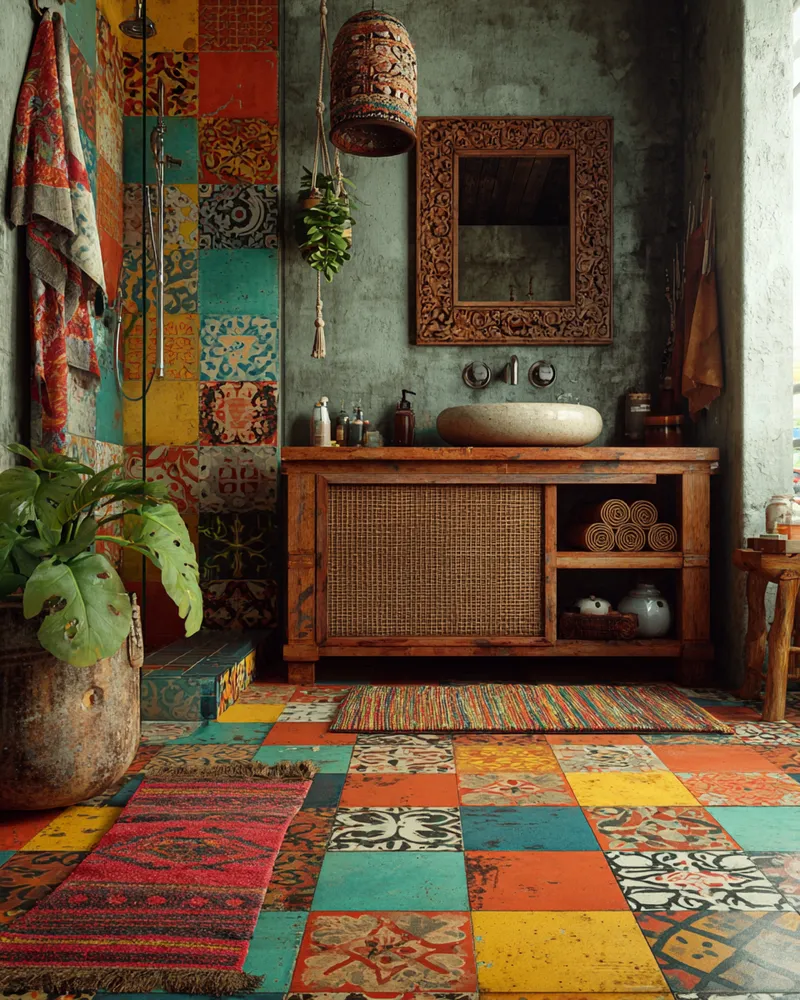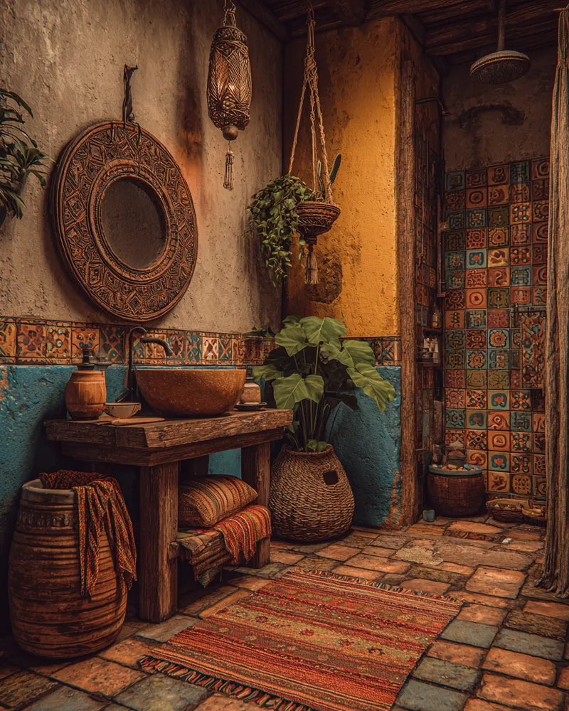 Boho Bathroom Bliss: Global Textiles for a Spa-Like Retreat ๐๐