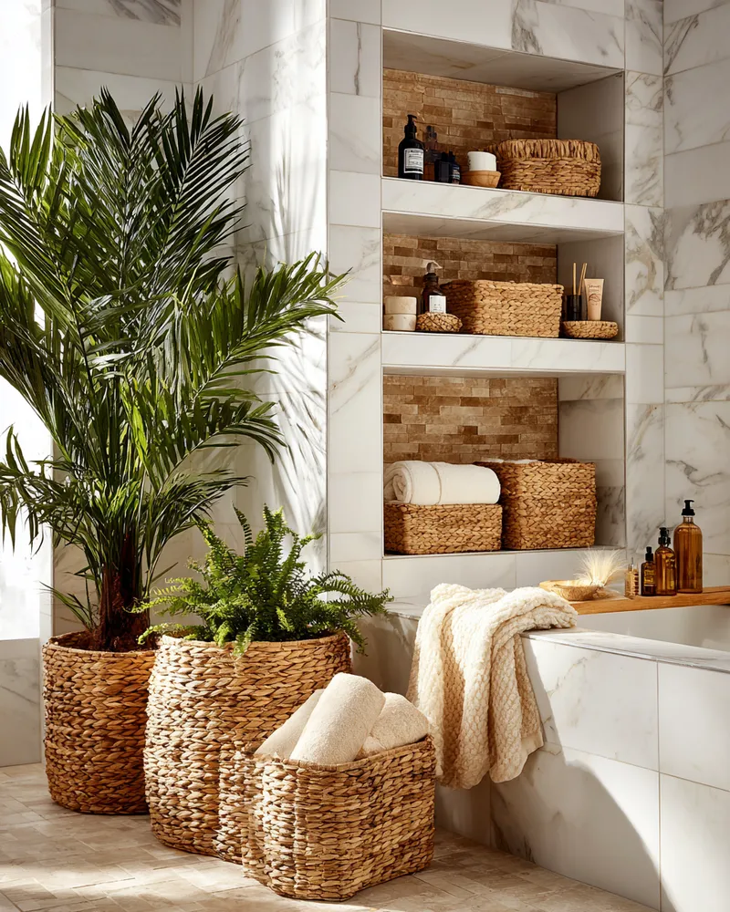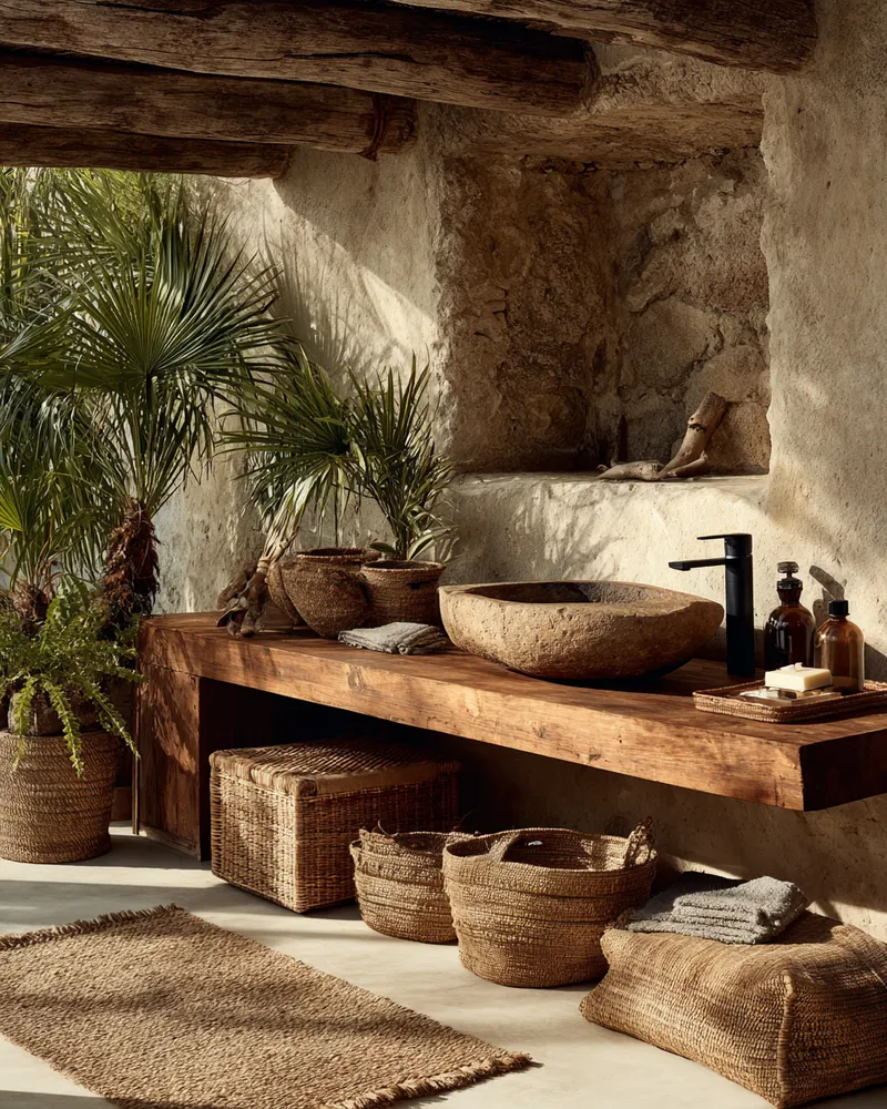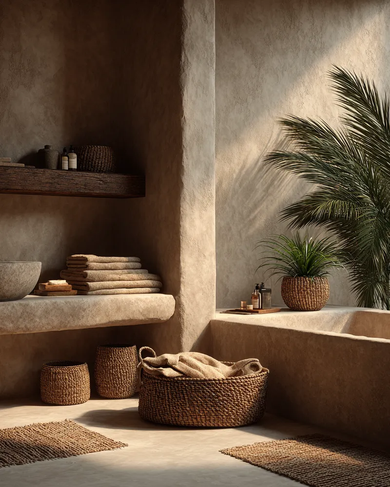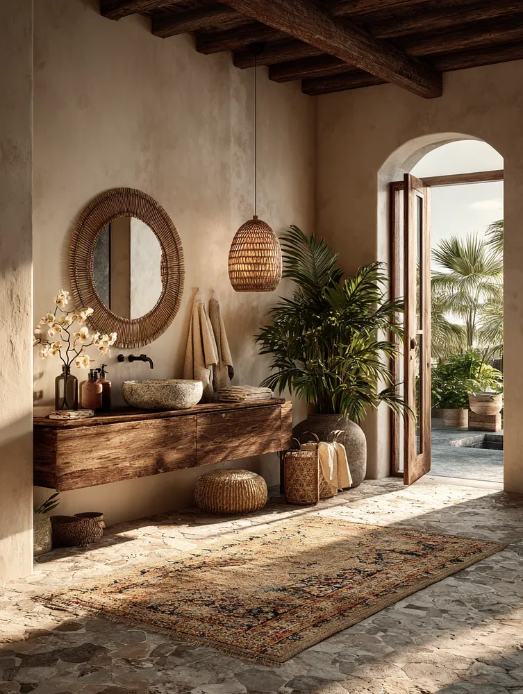 Your bathroom can be a sanctuary too! โจ Transform yours into a spa-like retreat with global textiles and artisanal touches. Imagine a lush Turkish bath towel, woven baskets for storage, and maybe even a Moroccan-inspired rug. Incorporate natural materials like bamboo or teak. These elements add warmth, texture, and a touch of bohemian luxury to an often overlooked space. Itโs about creating a calming, sensory experience that reminds you of distant escapes. Save these ideas for your bath refresh! ๐งโโ๏ธ #GlobalNomadDecor#BathroomDecor#BohoBathroom#TextileLove#SpaVibes#HomeDecorIdeas#GlobalFinds#InteriorStyling#RelaxingSpace#DecorInspiration