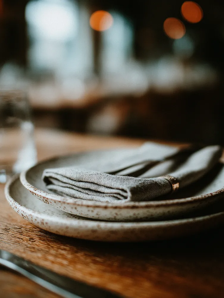 • **Accents:** Folded linen or satin napkins.