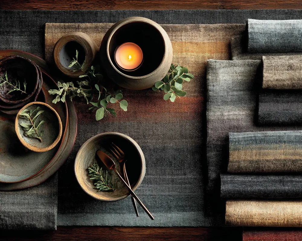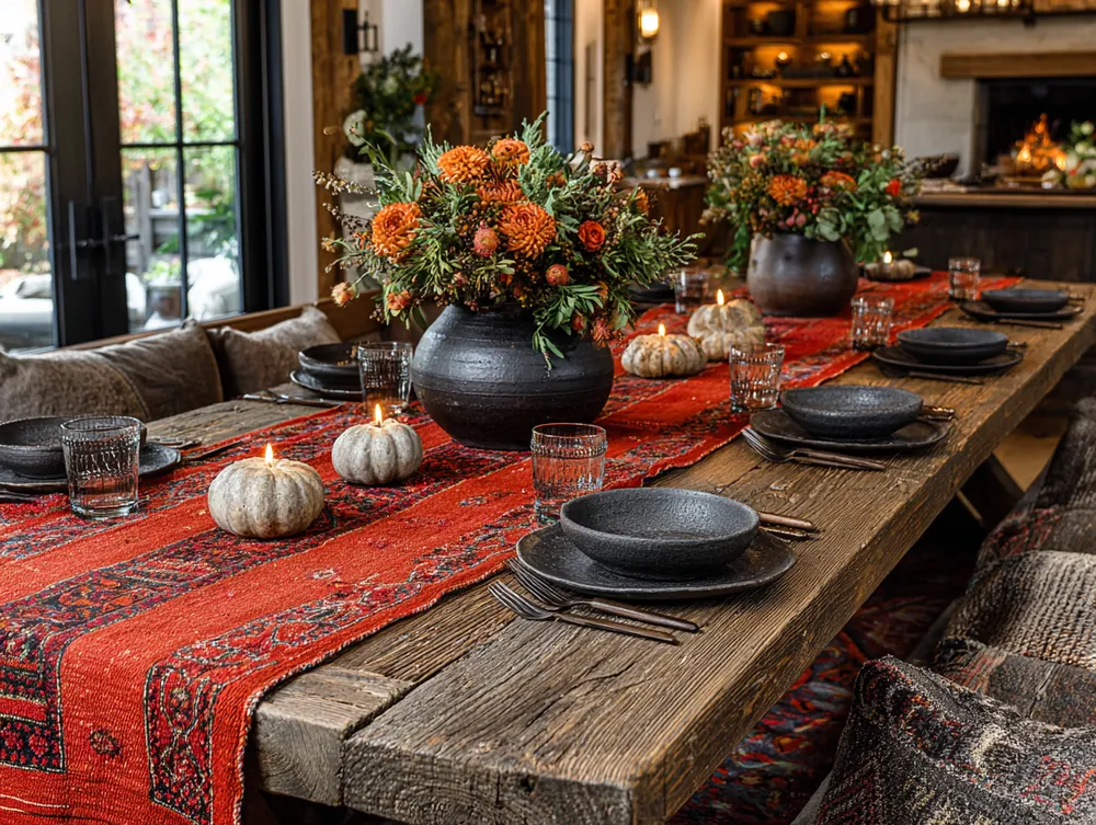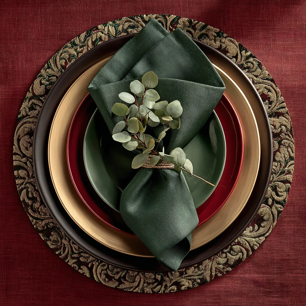 • **Base Layer:** A rich tablecloth or runner.