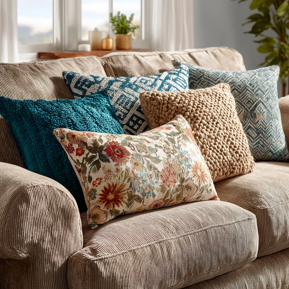 • **Pattern Power:** Introduce 2-3 patterned pillows.