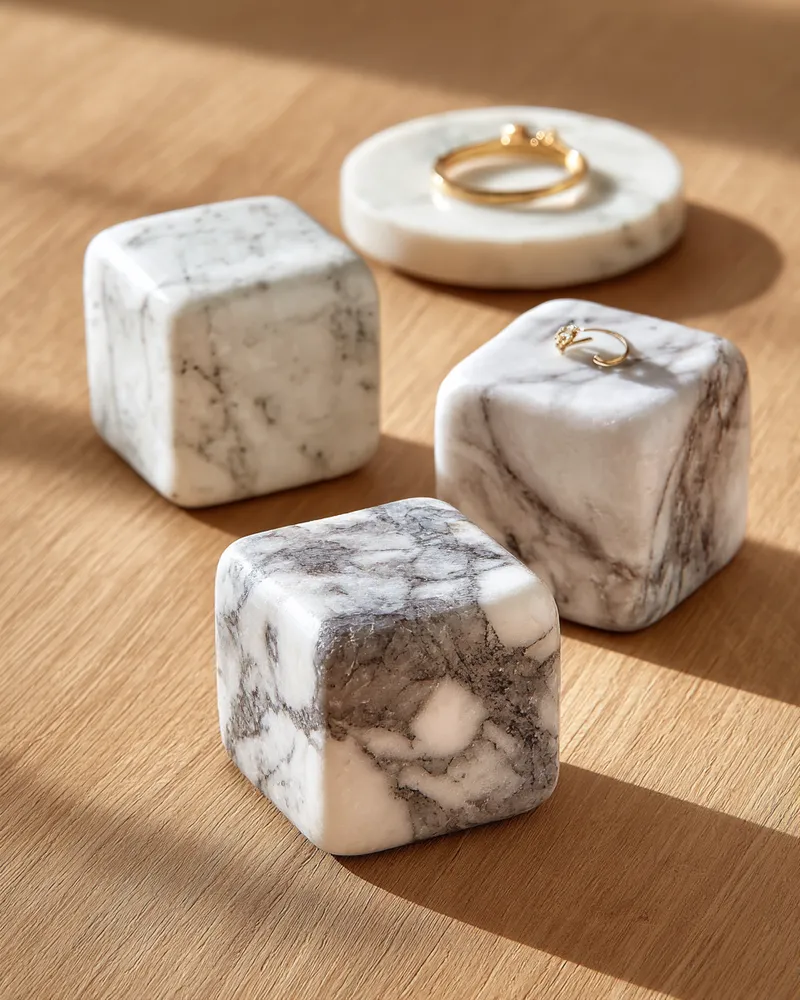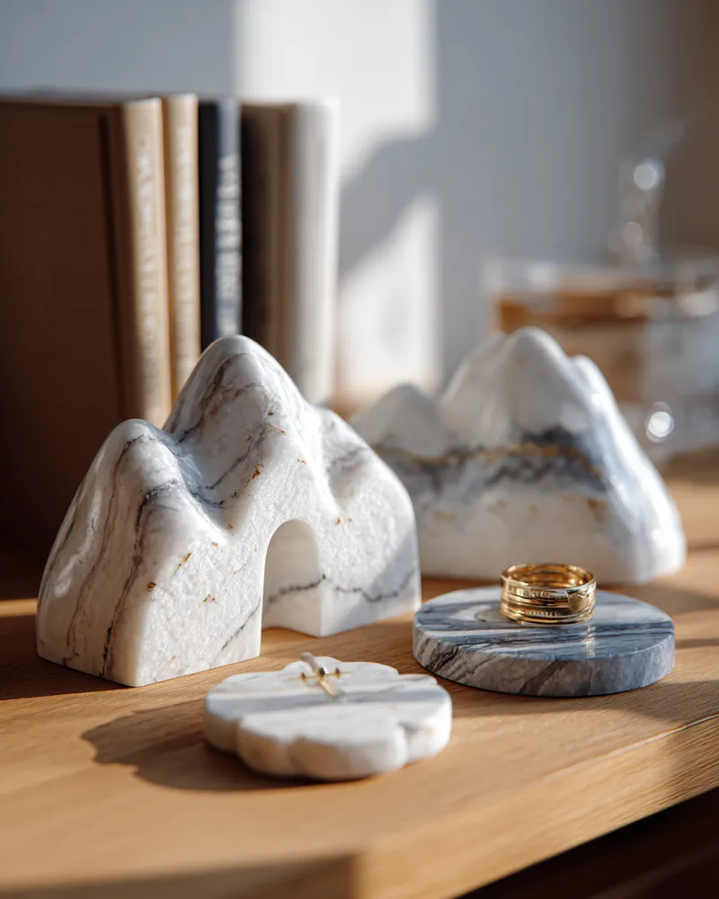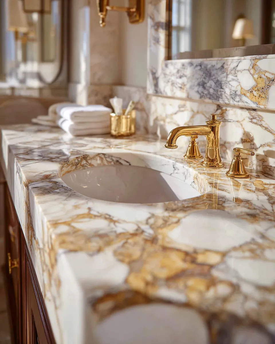 From classic Carrara with its subtle grey veining to dramatic Calacatta Gold or deep Nero Marquina, the variety of marble offers endless possibilities. Its cool, smooth surface paired with its natural, intricate patterns creates a look that is both grounding and incredibly glamorous.