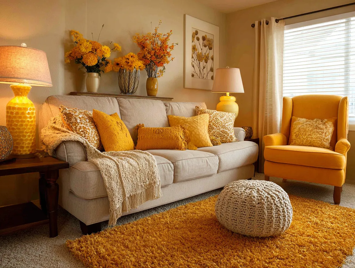 Golden Yellow Glow: Cozy & Welcoming Living Room Vibes! 💛🏠