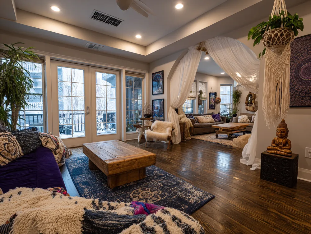 Infuse your home with artistic flair and bohemian charm. Save this for your dreamy design journey! 🦋 #interiordesign#homedecor#artnouveau#bohemianstyle#livingroomideas#artnouveauideas#organicdesign#whimsicaldecor#artisticinteriors#uniquehomes