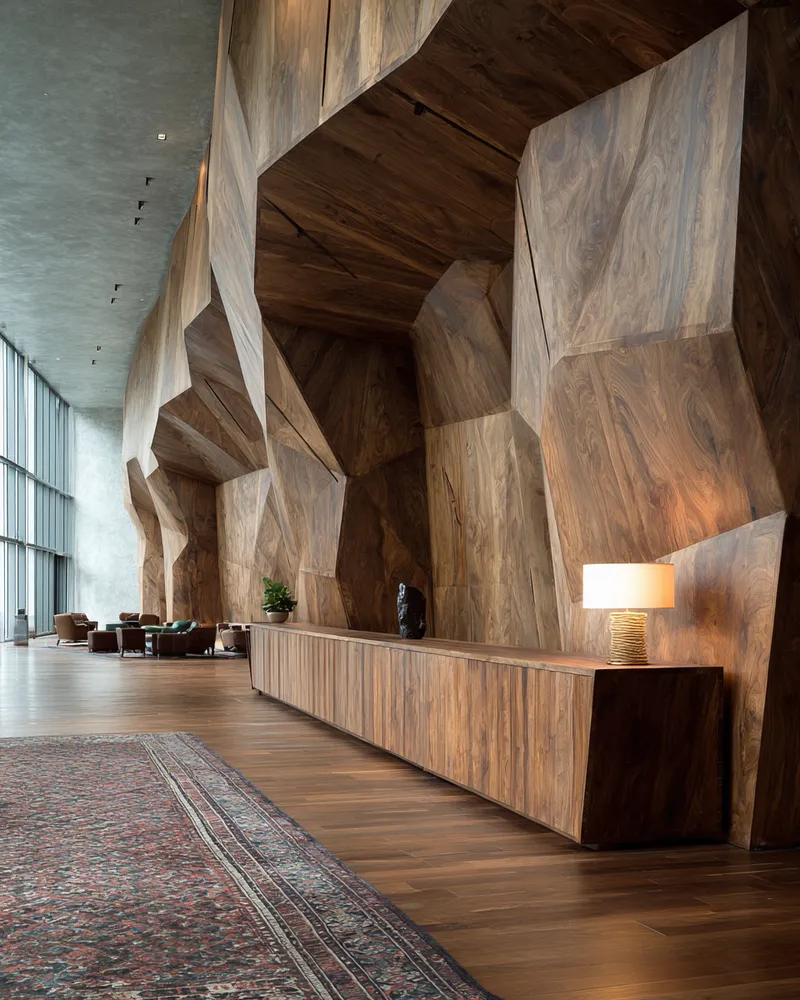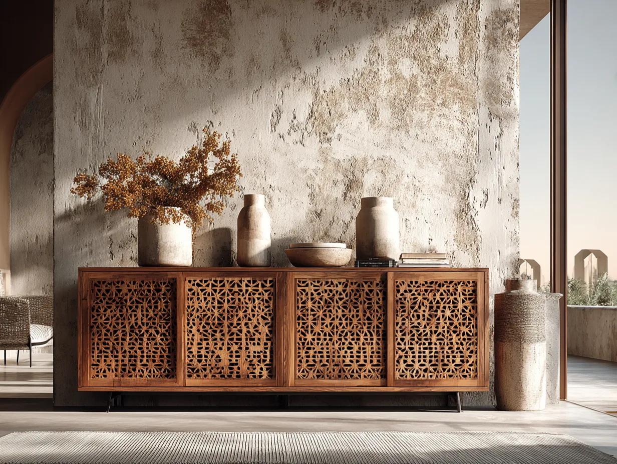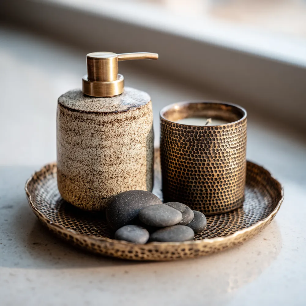 📦 Consider materials like carved wood, brushed metal, or textured composite that add tactile and visual interest.