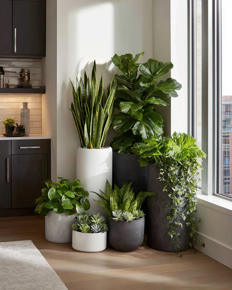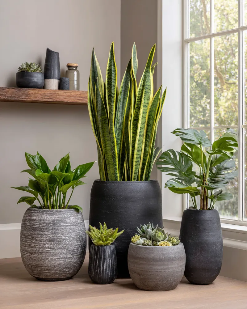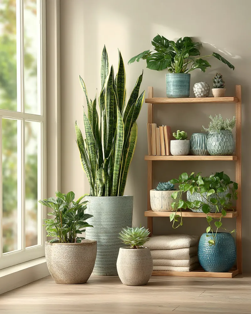 1. **Snake Plant:** Air purifying powerhouse, needs minimal light.