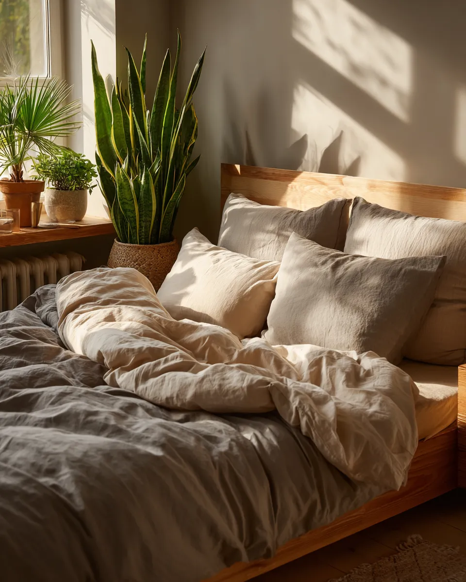 Focus on low-maintenance, air-purifying varieties to create a truly restorative environment. What plants grace your peaceful bedroom? ✨