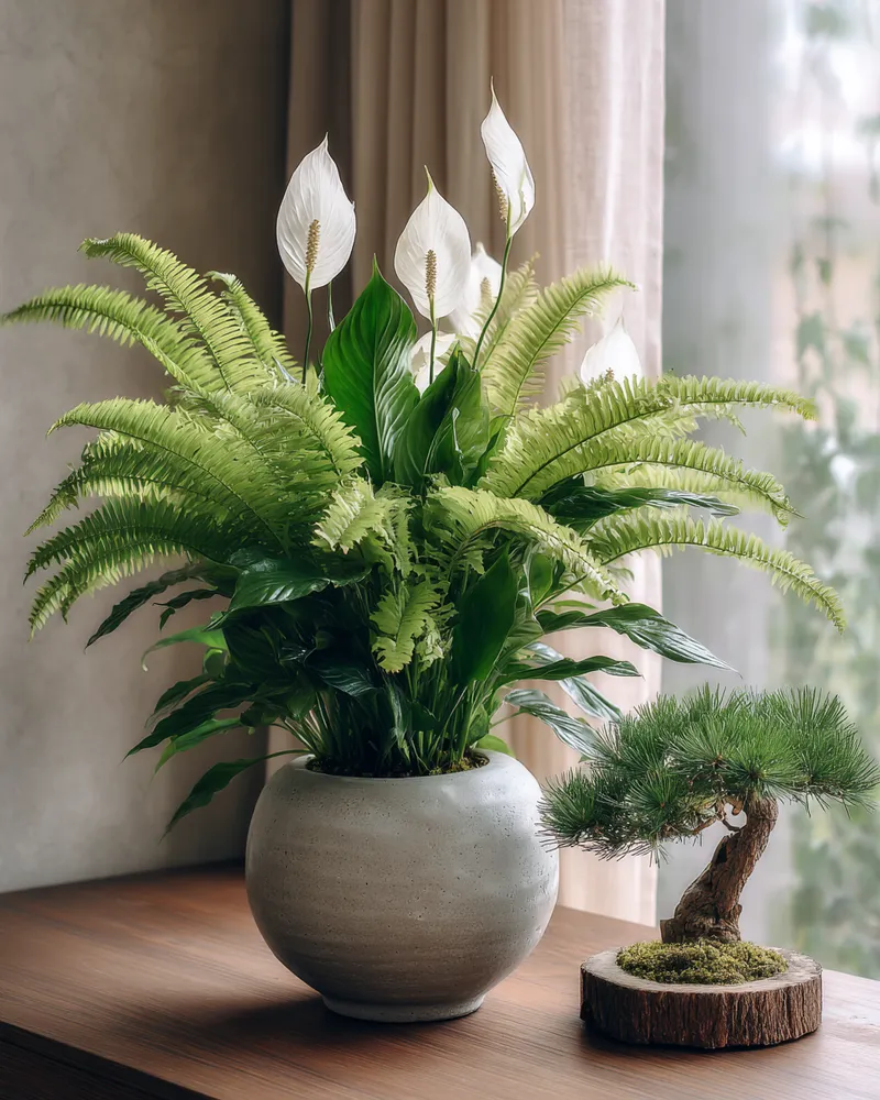 7. **Boston Fern:** Soft, feathery fronds for a tranquil feel.