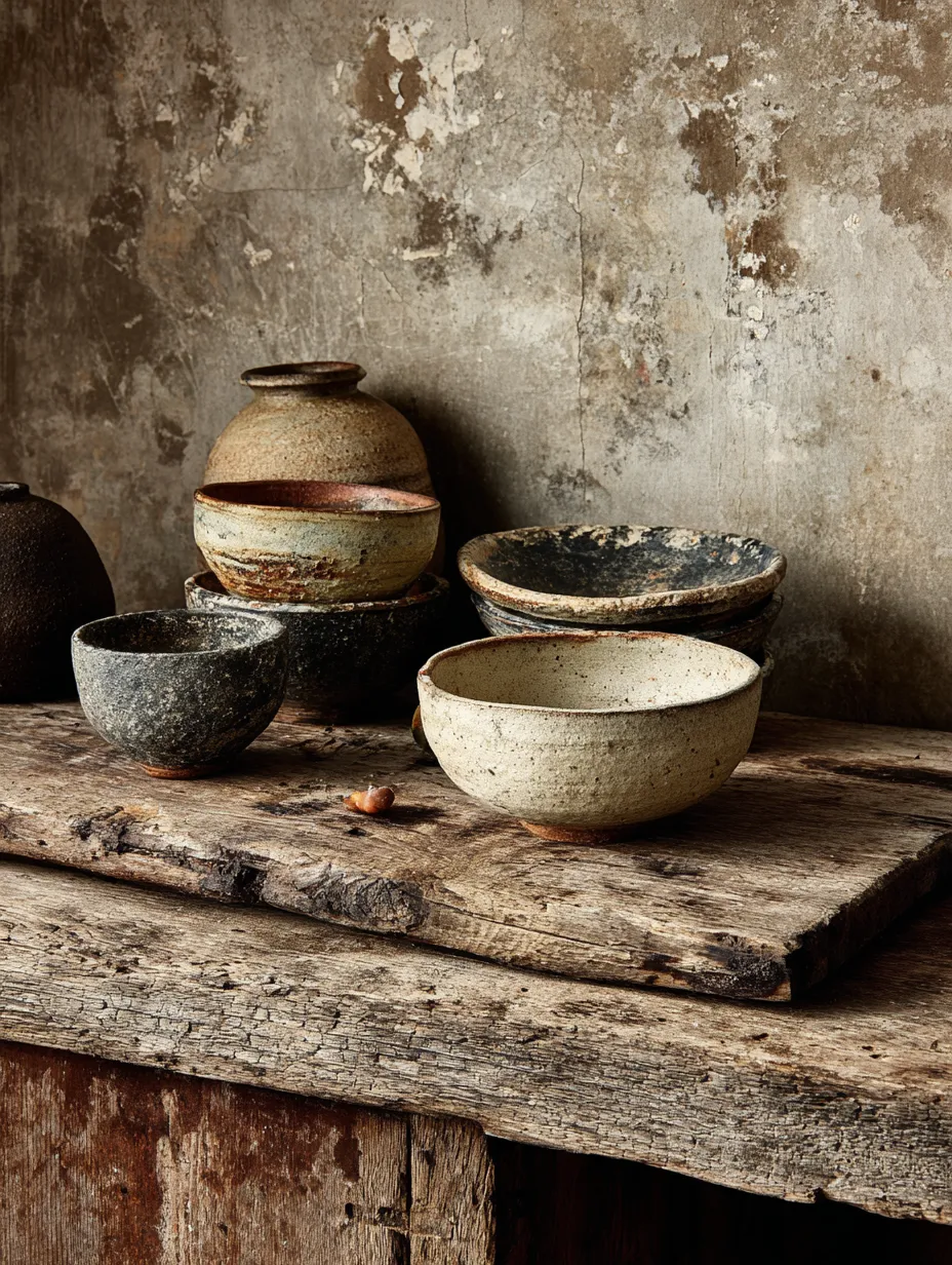 * **Earthy Tones:** Think unglazed ceramics, natural wood, and muted colors.