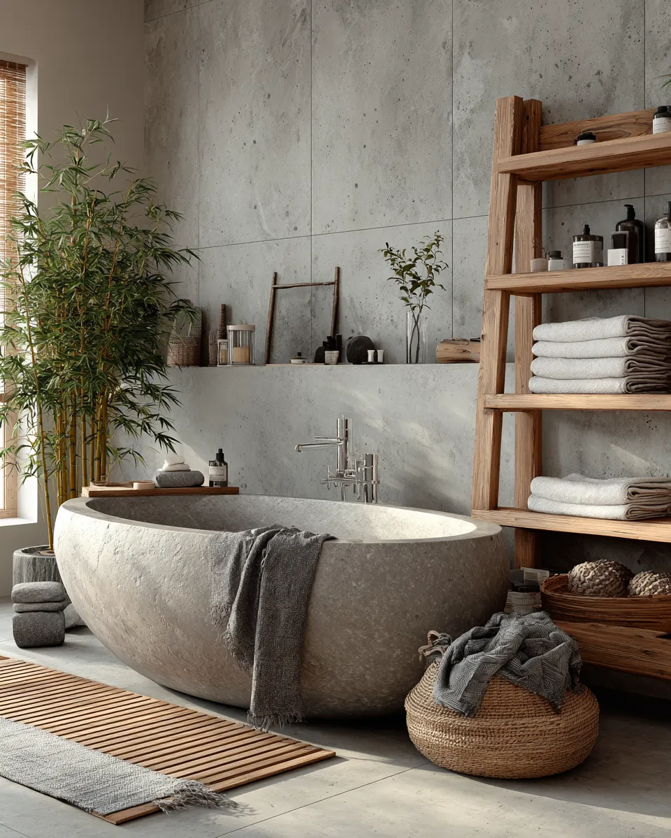 * **Natural Elements:** Incorporate bamboo accents, stone soap dishes, or small potted plants.