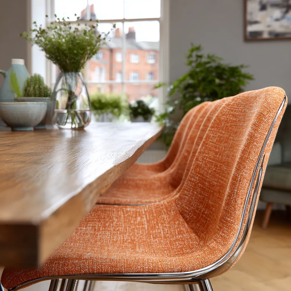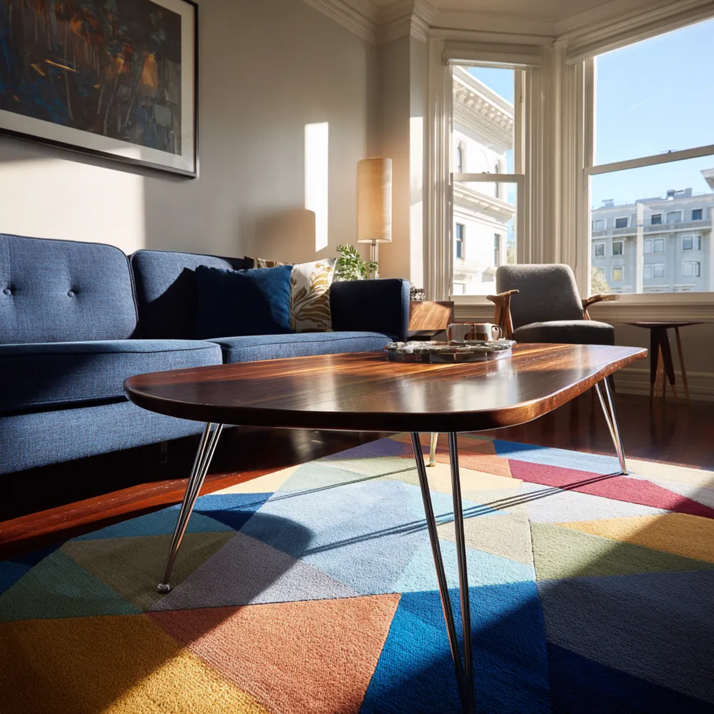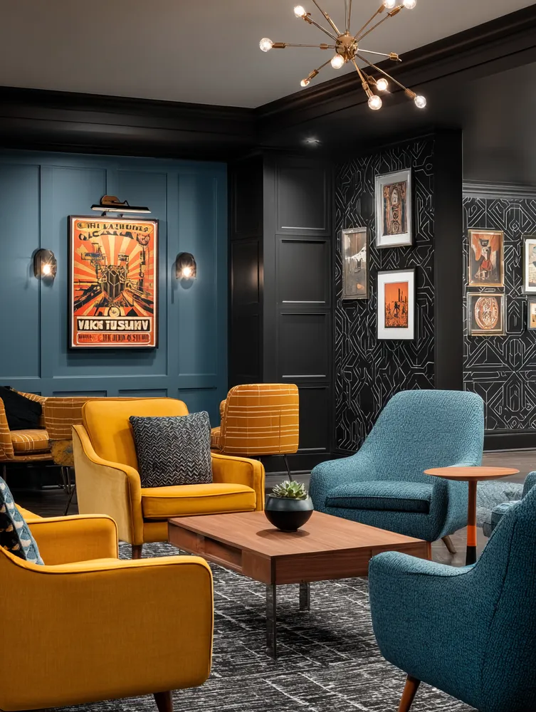 Think clean lines, boomerang shapes, and materials like polished wood, chrome, and perhaps even patterned laminate. Bold colors can make a statement here – imagine emerald green or coral accents.