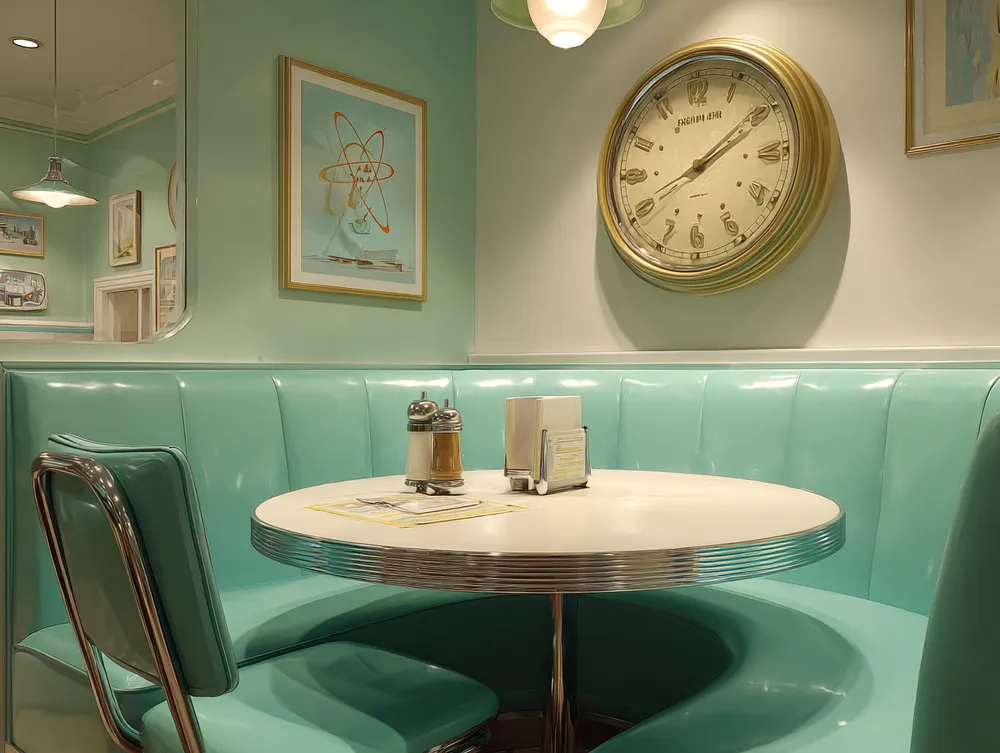 Save these atomic dining room ideas for your next dinner party setup! #AtomicAgeDiningIdeas#RetroDiningRoomIdeas#MidCenturyDiningIdeas#GalacticDecorIdeas#RetrofuturismDining#VintageDining#DiningRoomMakeover#SpaceAgeInspired#1950sDining#EntertainingSpace