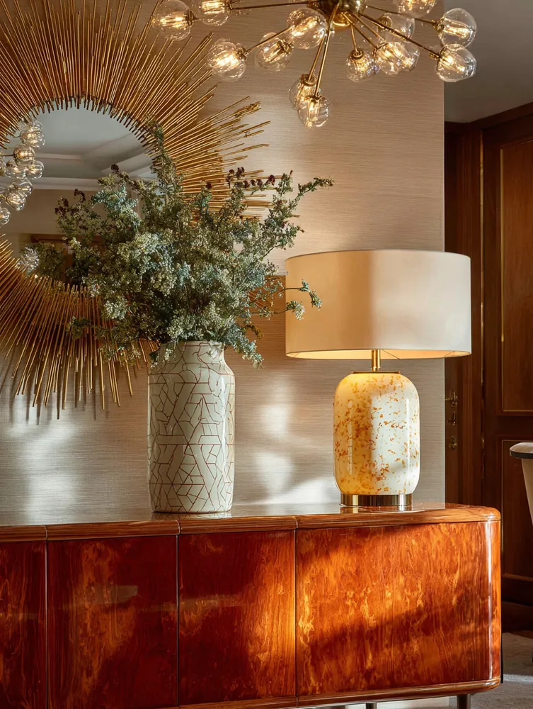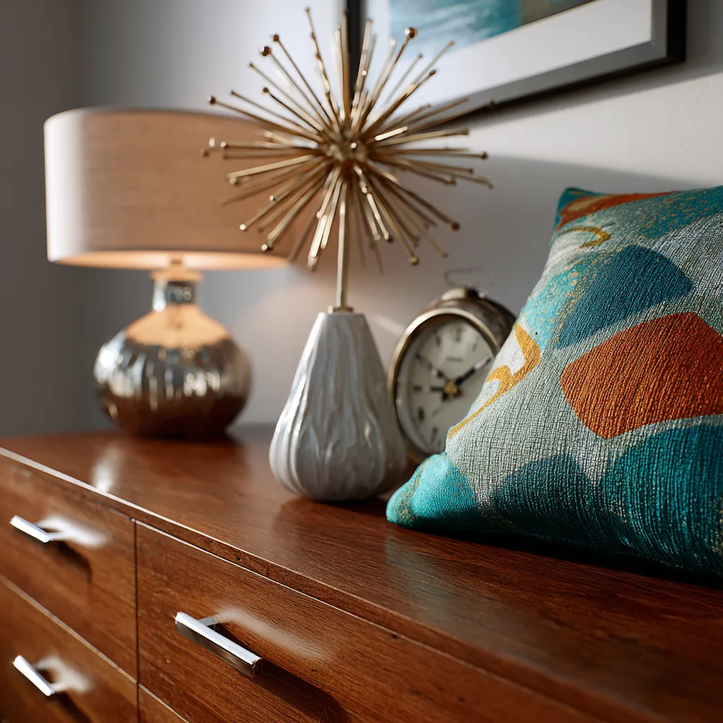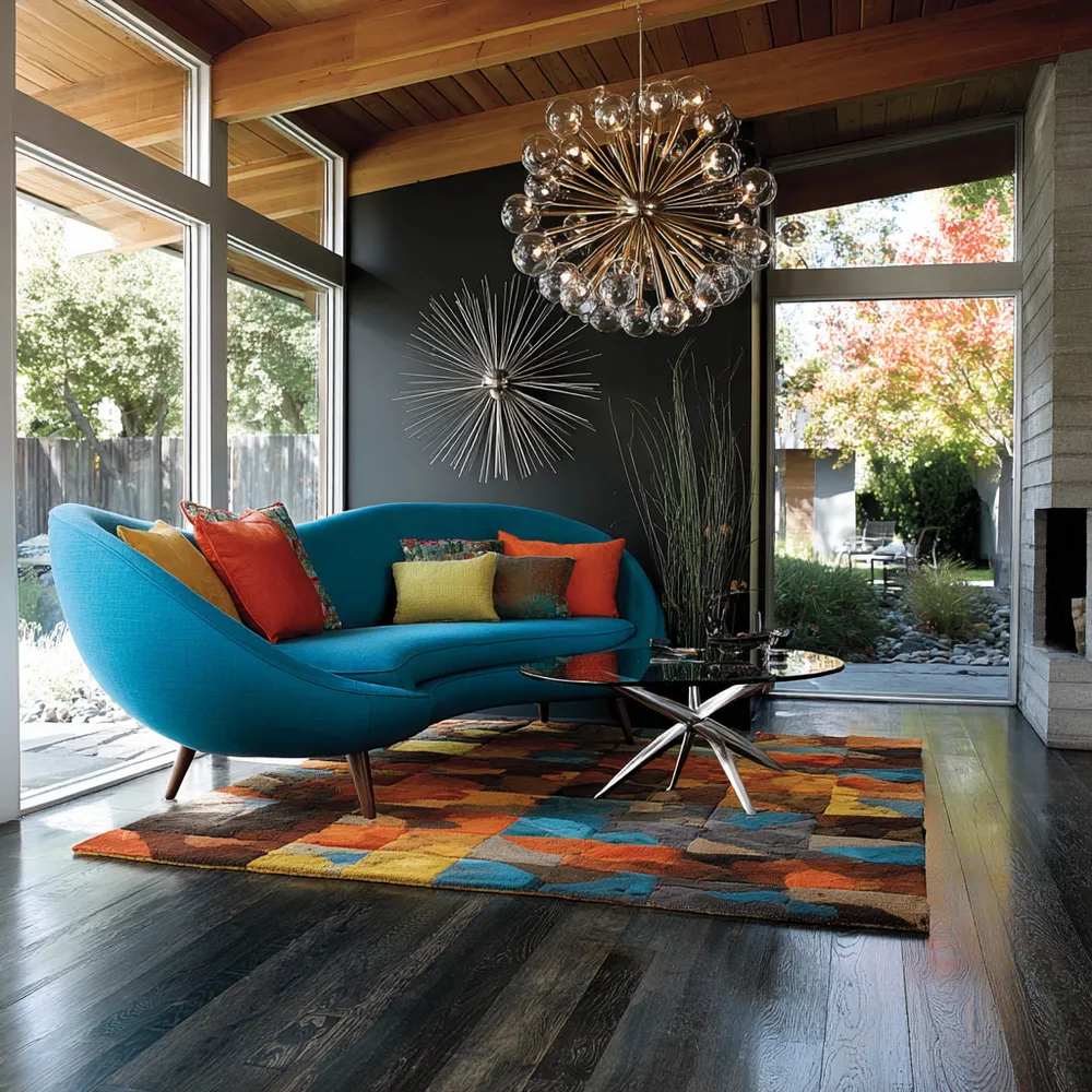 Embrace optimistic colors like teal, orange, or chartreuse in your accessories. It's all about capturing that unique blend of mid-century charm and forward-thinking design.