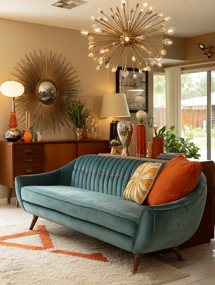 Save these atomic accent ideas for a quick retro refresh! #AtomicAccentsIdeas#RetrofuturismDecorIdeas#MidCenturyAccents#SpaceAgeDecor#HomeDecorIdeas#AccentDecor#RetroHomeStyle#DecoratingTips#UniqueDecor#VintageAccents