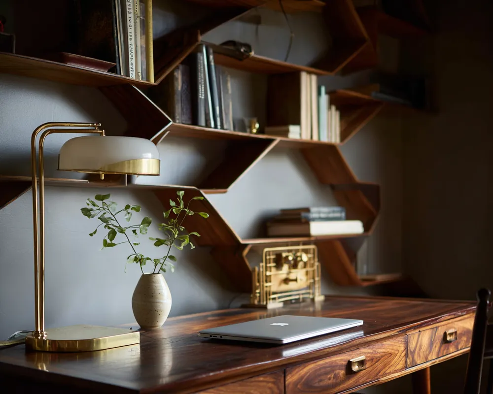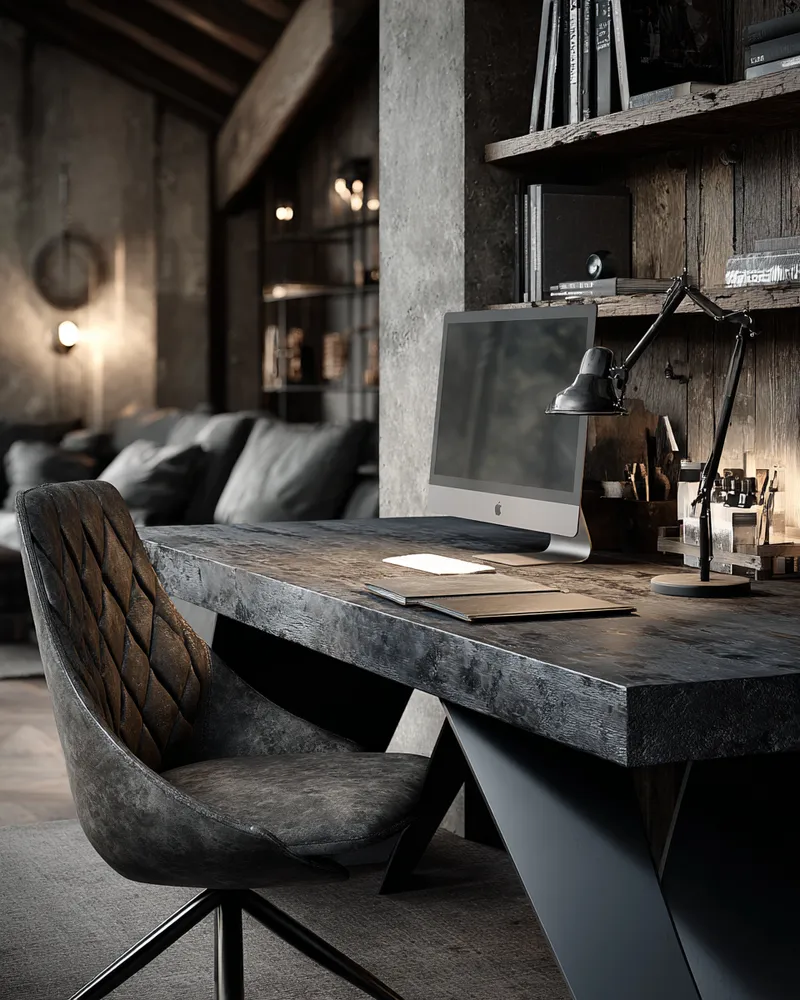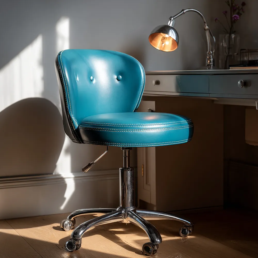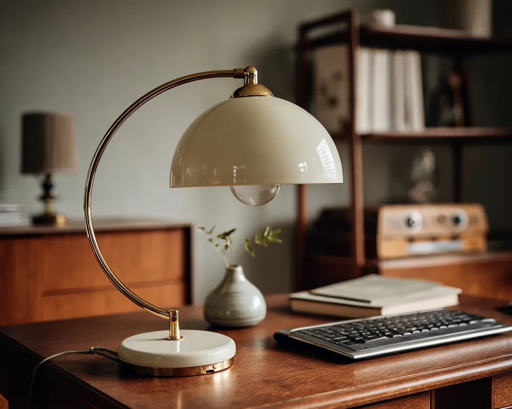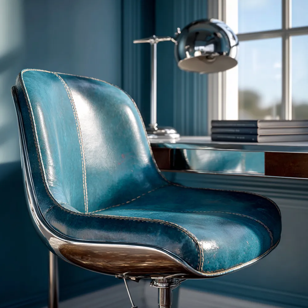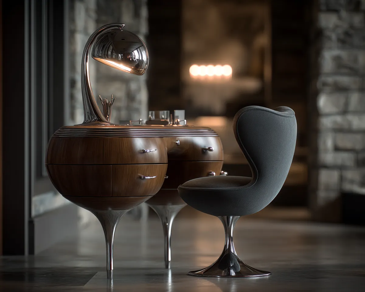 Create a home office that feels both inspired and highly functional with a Retrofuturistic desk and chair combination. Embrace the optimistic visions of past futures!