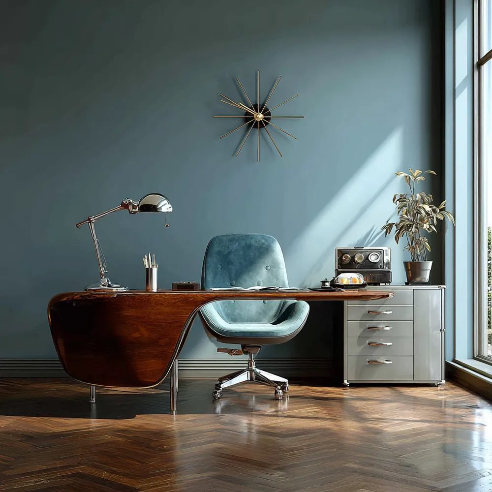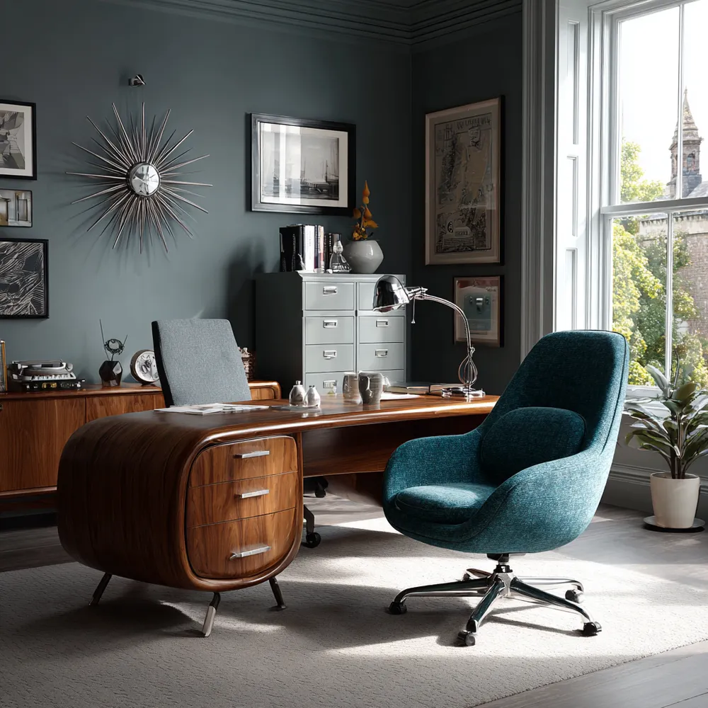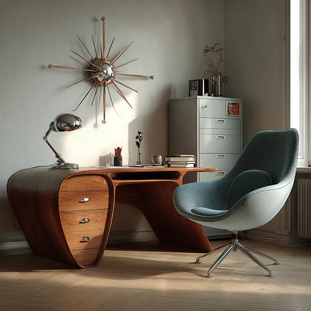 Save this for your ultimate retrofuturistic workspace setup! #RetrofuturisticDeskIdeas#AtomicAgeDesk#MidCenturyOfficeDesk#FuturisticOfficeChair#WorkspaceDesignIdeas#HomeOfficeSetup#RetroOfficeFurniture#SpaceAgeOffice#ErgonomicOffice#DeskInspiration