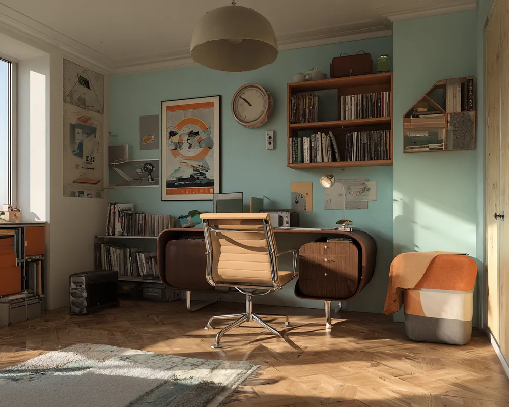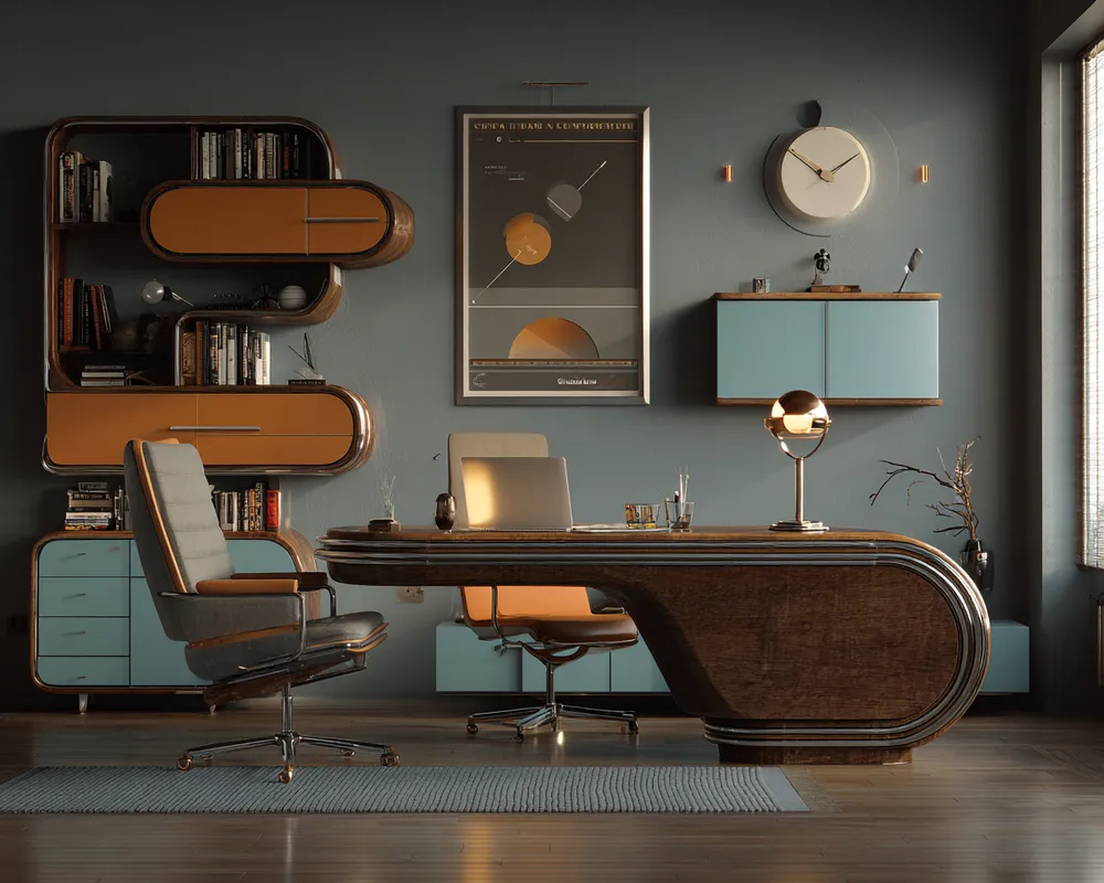 Orbit Your Office: Retrofuturistic Workspace Design 🚀📚