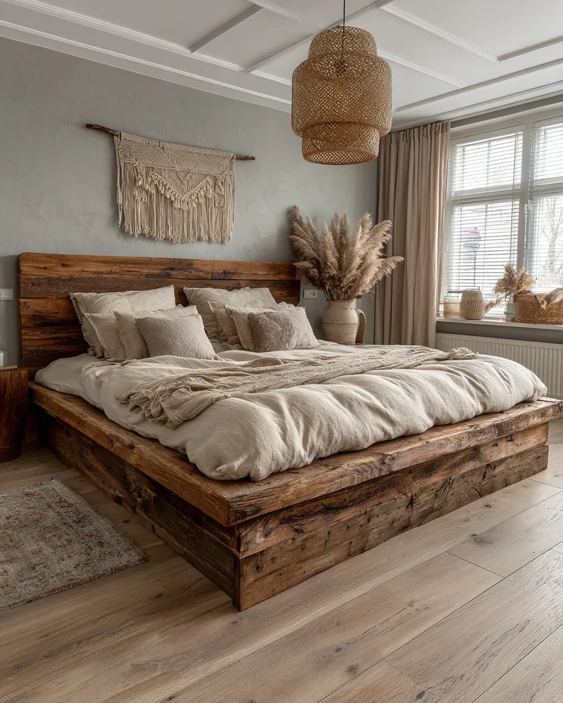 * **Natural Wood Accents:** Bedside tables, a dresser, or even wood wall paneling.