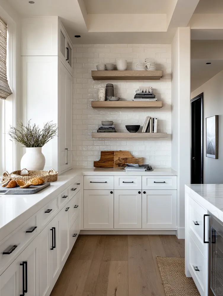 * **Simple Hardware:** Matte black or brushed brass pulls keep it sleek.