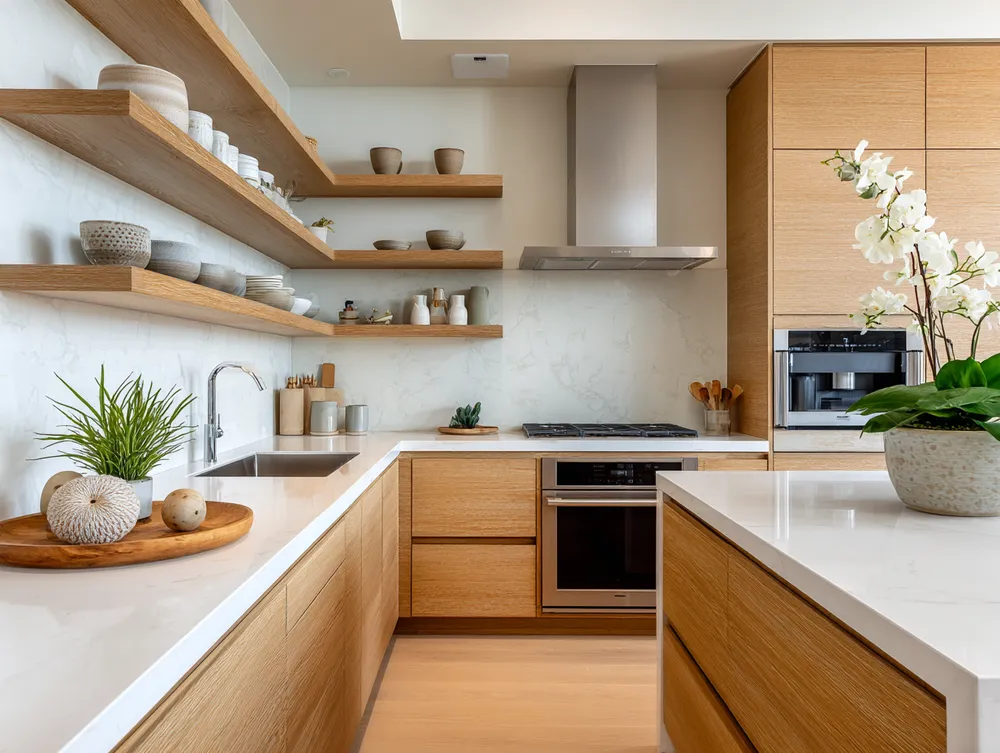 * **Light Wood Cabinetry:** Think natural oak or birch for a warm, airy feel.
