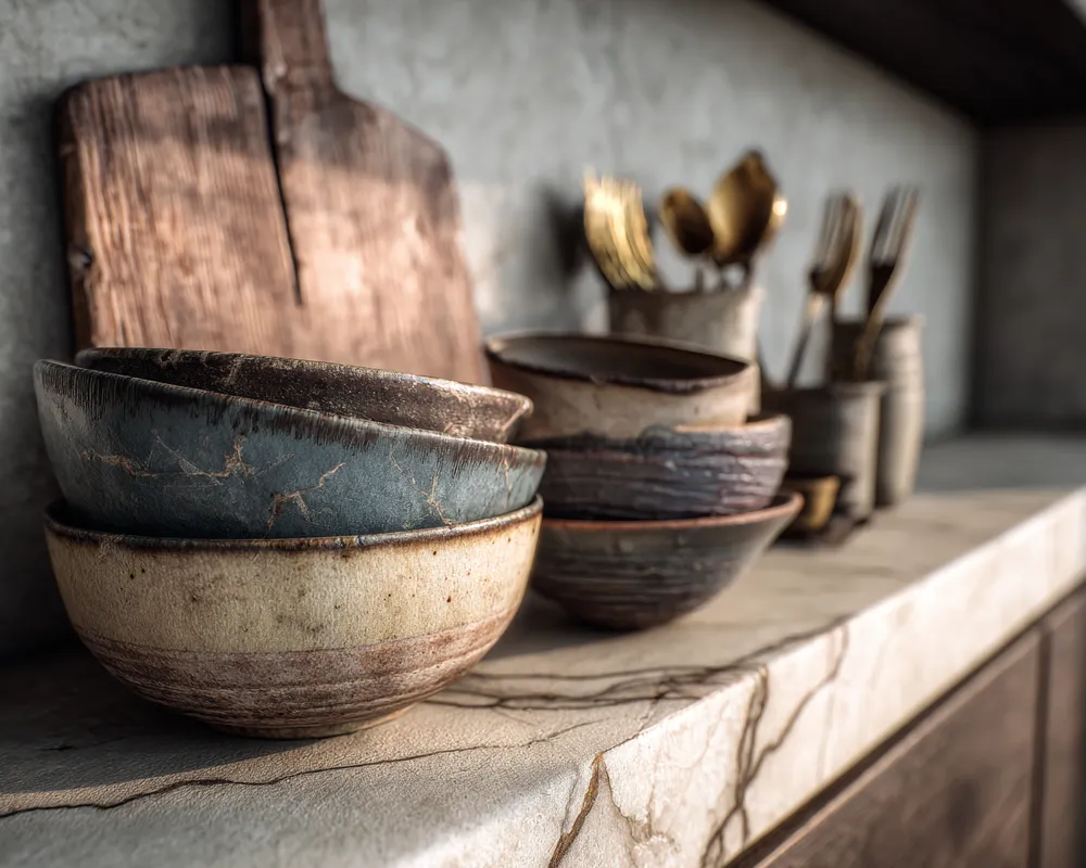 * **Textured Backsplash:** Handmade tiles with subtle variations add depth.