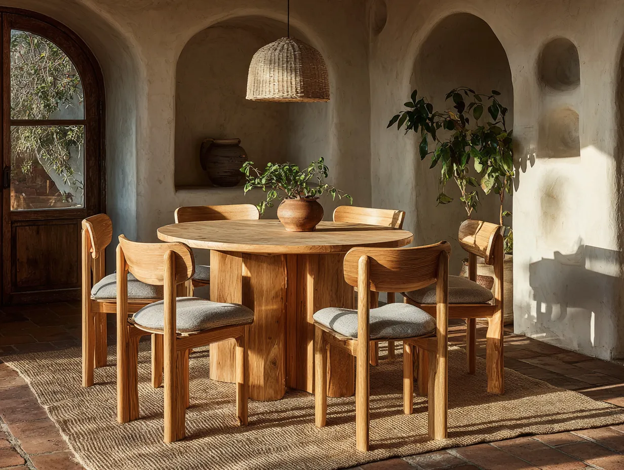 * **Light Wood Dining Table:** Simple, functional design in oak or ash.