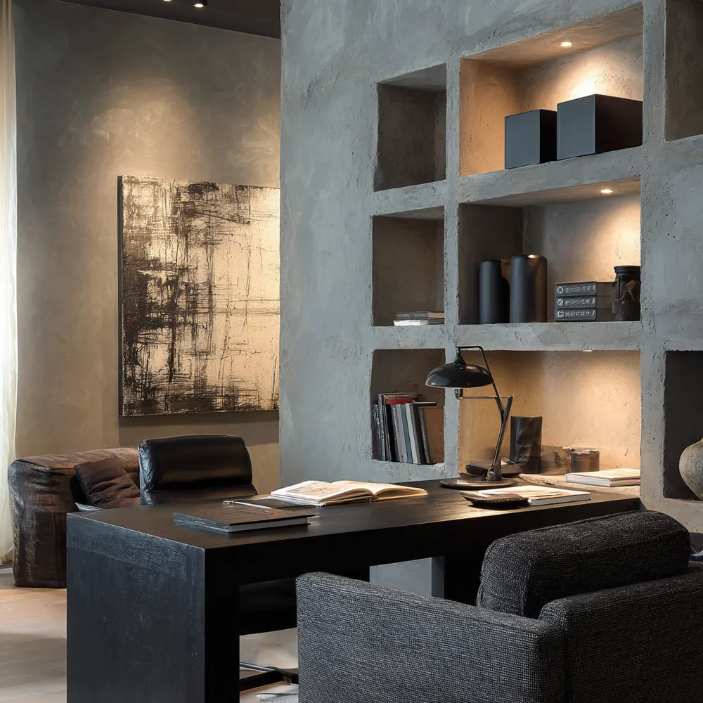 Embrace the Dark: Dramatic Home Office Design with Shadow Play 🖤