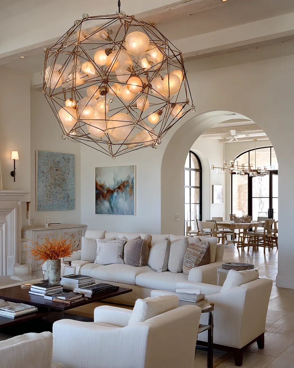 Choose a statement piece that complements your room's style and scale. It can instantly elevate your decor and become a talking point. Save this for your bold lighting inspo! #statementlighting#lightingdesign#statementlighting#lightingdesign#lightingideas#interiordesign#homedecor#designinspiration#bolddecor#homelighting#decorinspo#architecturallighting